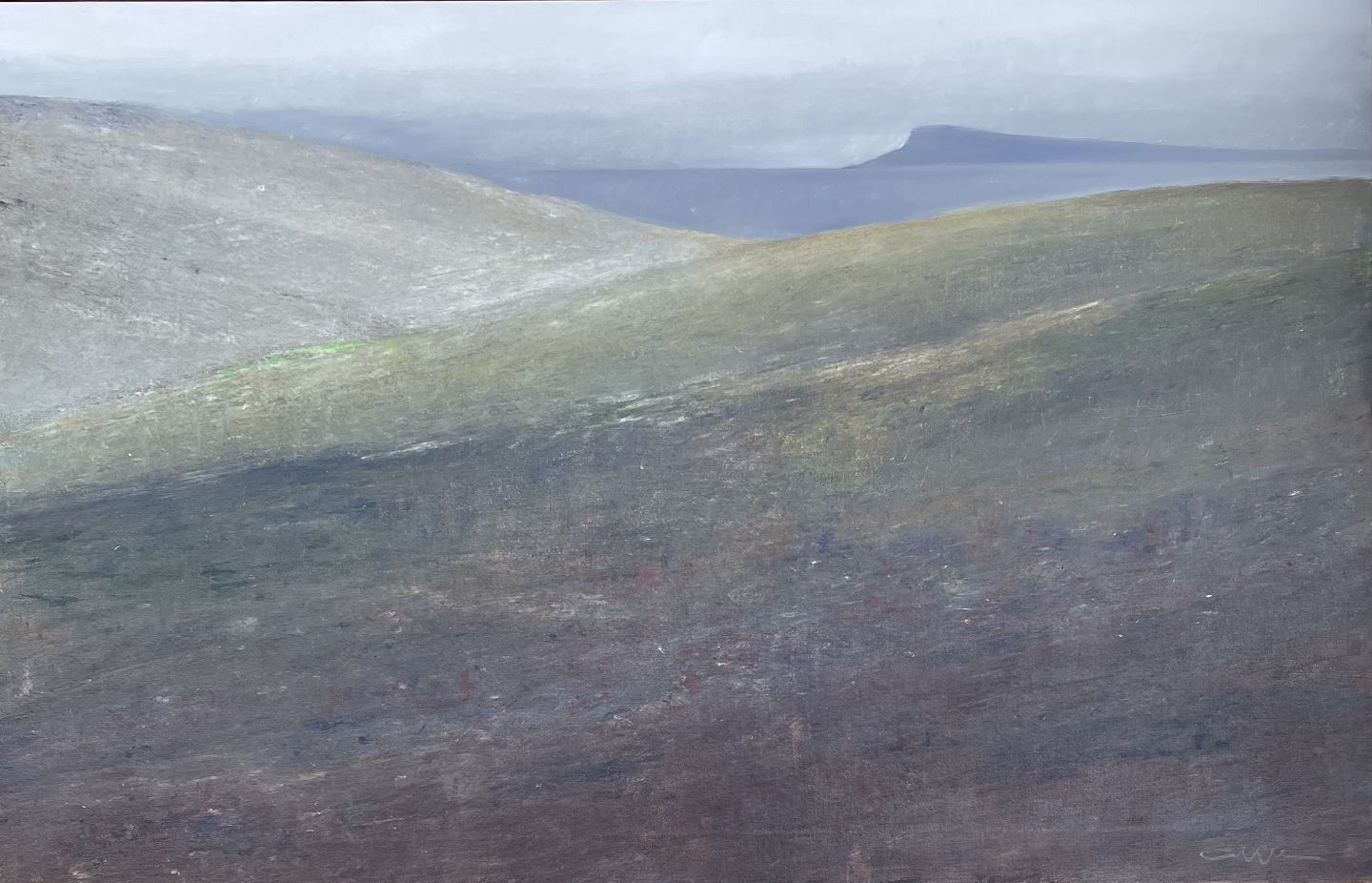 "Grålys Færøerne" flot oliemaleri i original stand, dog med krakeleringer i himlen, maleriet bør ses. Lys natur ramme.
