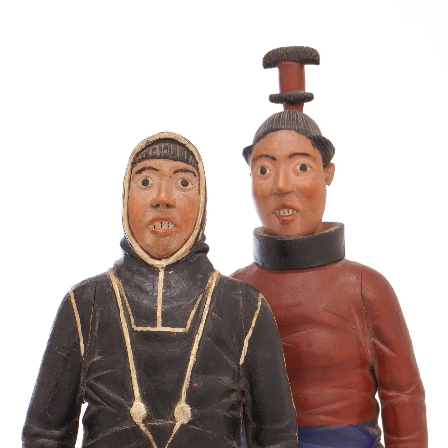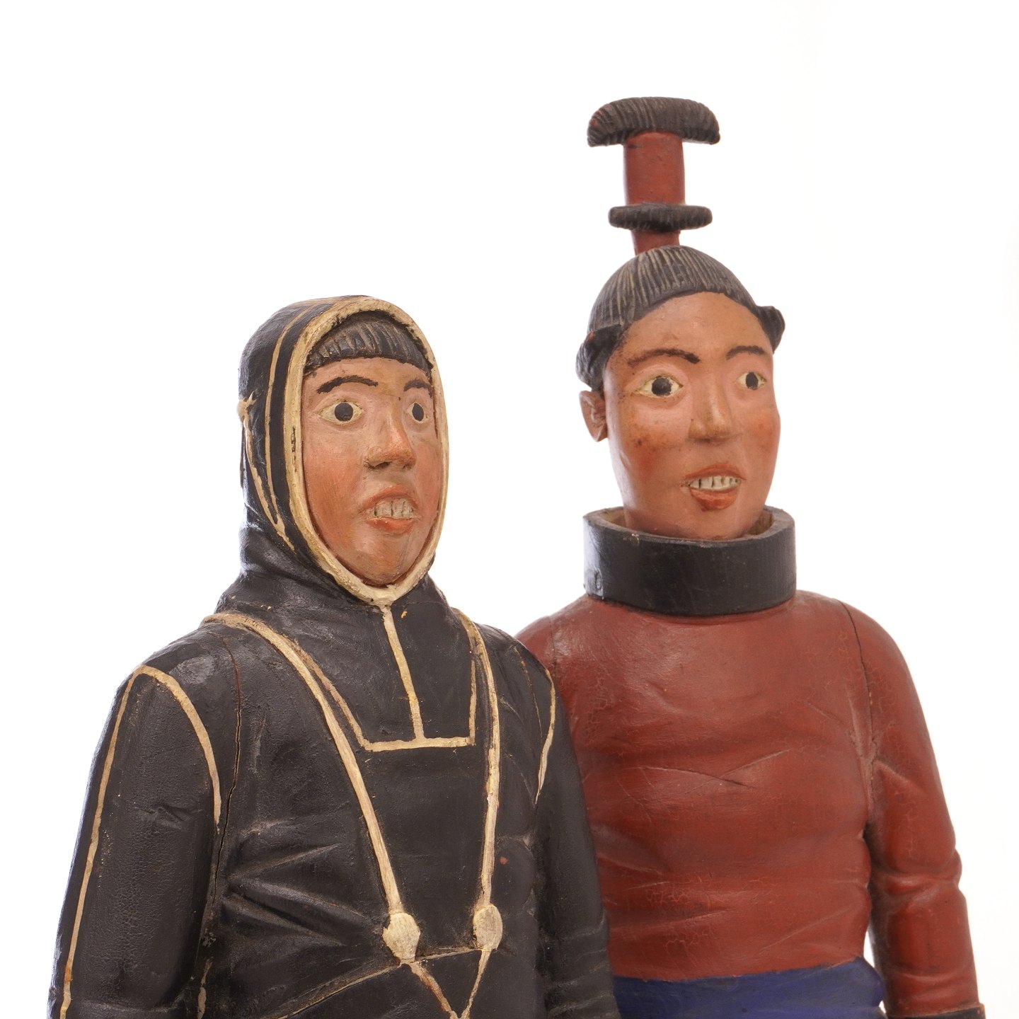 Johannes Kreutzmann, 1862-1940, ein Paar grönländische Holzfiguren Beide signiertH: 39&45cm