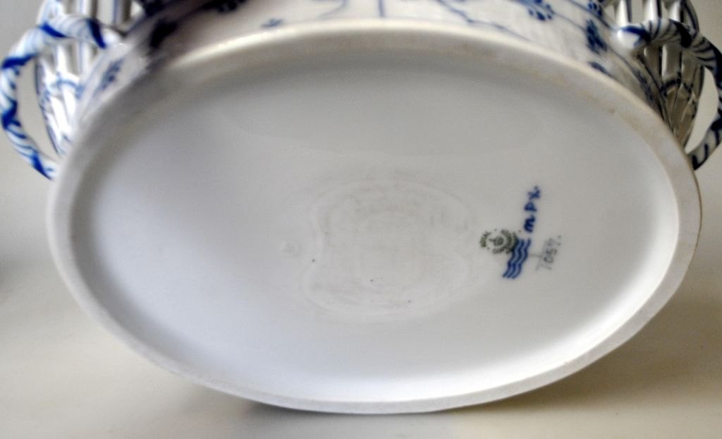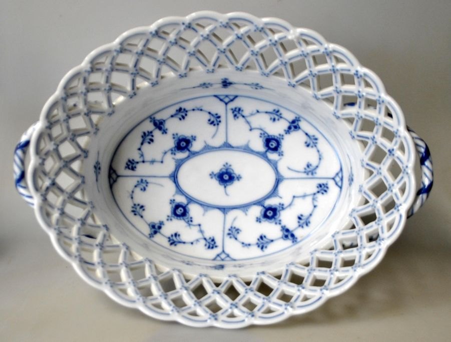 Obstschale/Jardinière aus Vollspitze, Royal Copenhagen, 1057, 20. Jahrhundert. Kopenhagen, Dänemark. Gestempelt. Höhe: 9,5 cm. Länge: 28 cm. Breite: 21 cm.1. Sortierung.