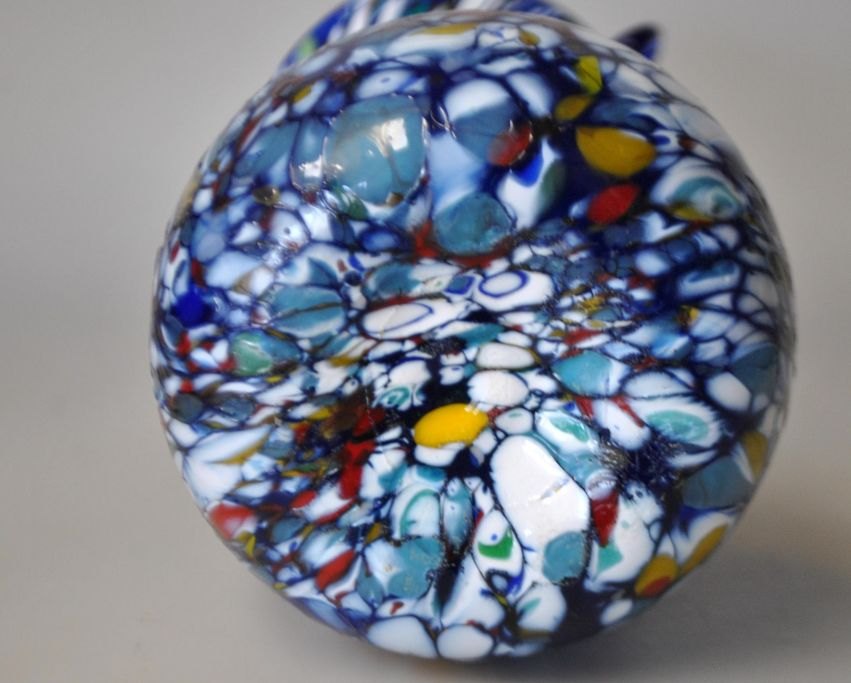 Murano-Glasvase, 20. Jahrhundert. Italien. Mehrfarbiges Glas. Mit zwei Henkeln. Höhe: 19 cm. Mit Originaletikett aus Murano.Bestellnummer: 29094