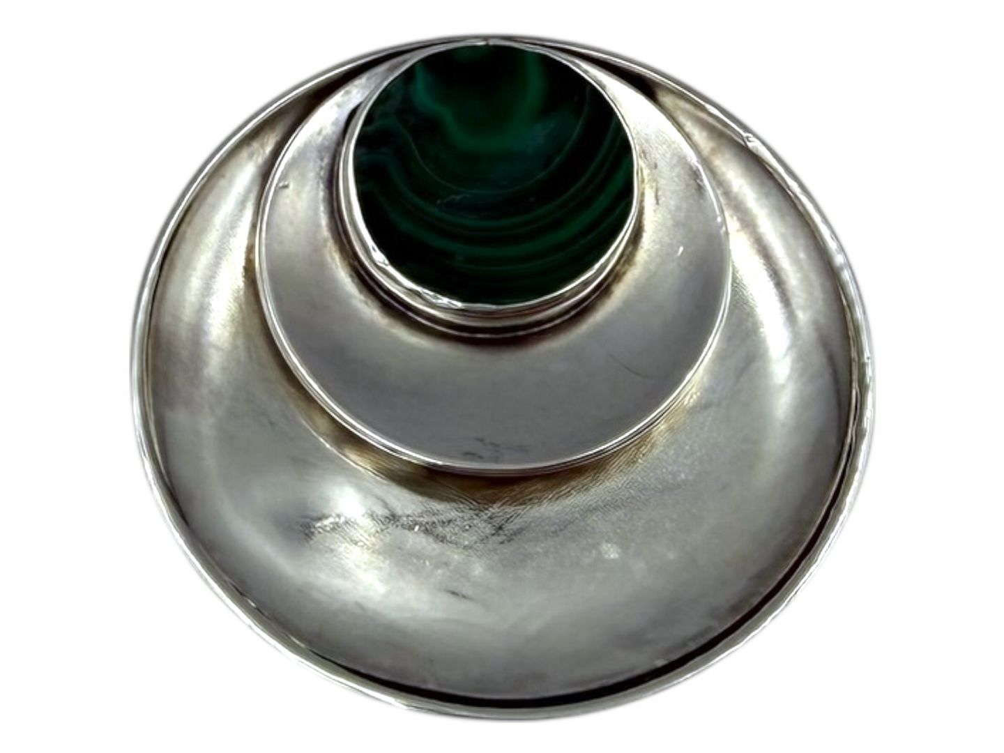 Just Andersen sølvModerne broche med grøn malakit