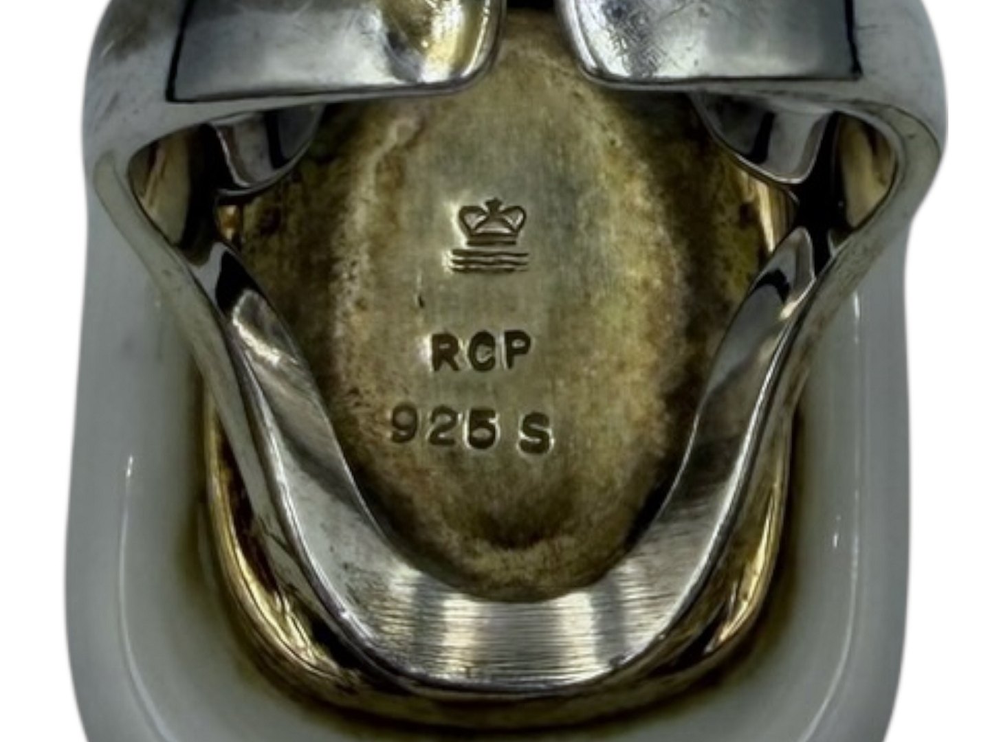 Royal Copenhagen sterlingsølv - stor ring i sølv med moderne porcelæn.Ringstørrelsen er variabel. Toppen af ringen måler 3,0 x 2,1 cm.