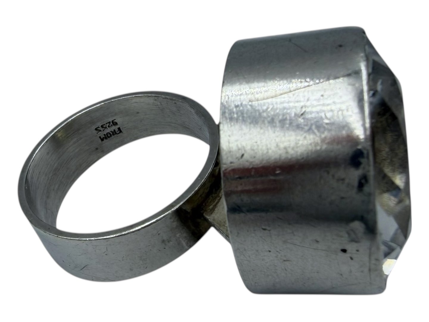 Niels Erik From sterlingsølv, stor ring med stor krystal.Stemplet "FROM 925S". N.E. From var sølvsmed i Randers og Nakskov fra 1944 og efter hans død i 1986 fortsatte selskabet med at lave smykker frem til 2009. Smykker fra N.E. From er kendt for deres høje kvalitet. Denne er fra ca. 1970.