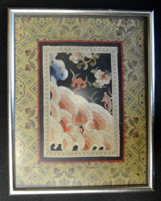 Chinesische Seidenstickerei, 19. Jahrhundert. Blumenmotiv. 26,5 x 20,5 cm.Eingerahmt.