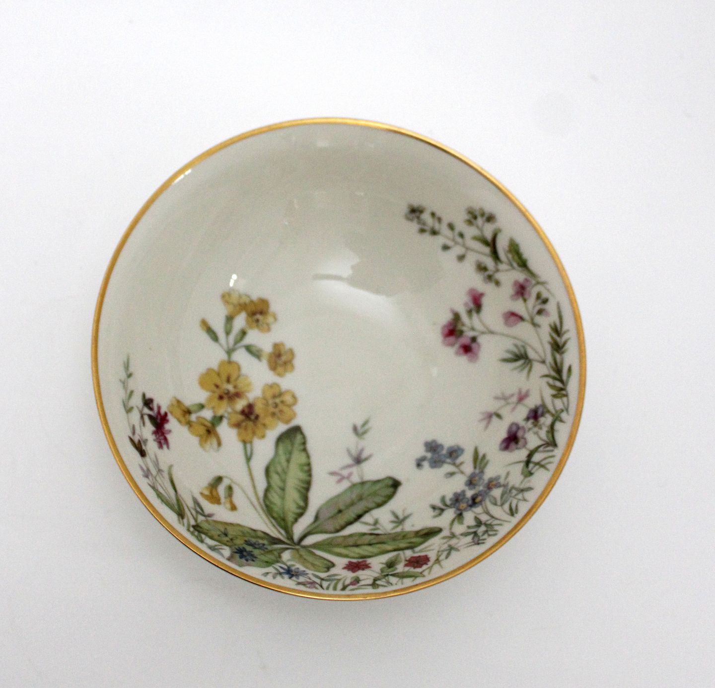 Krautheim, Selb Bavaria, Germany, Danmarks Flora cremet stel med guldkanter motiv Danmarks flora flere forskellige motiver.Lille skål. Diameter 15,5 cm. Højde 5 cm. Pris: 175 kr. stk. Lager: 1