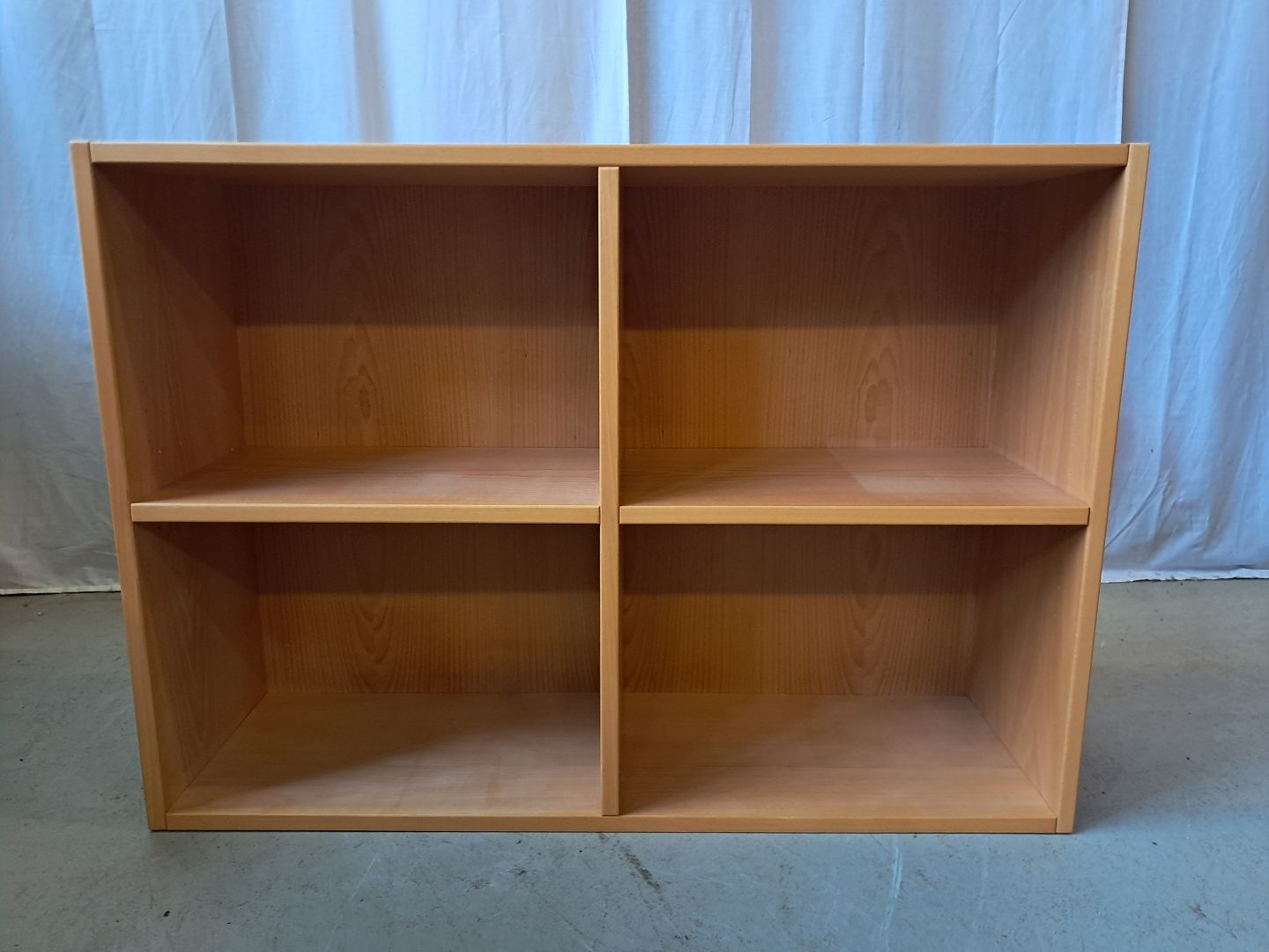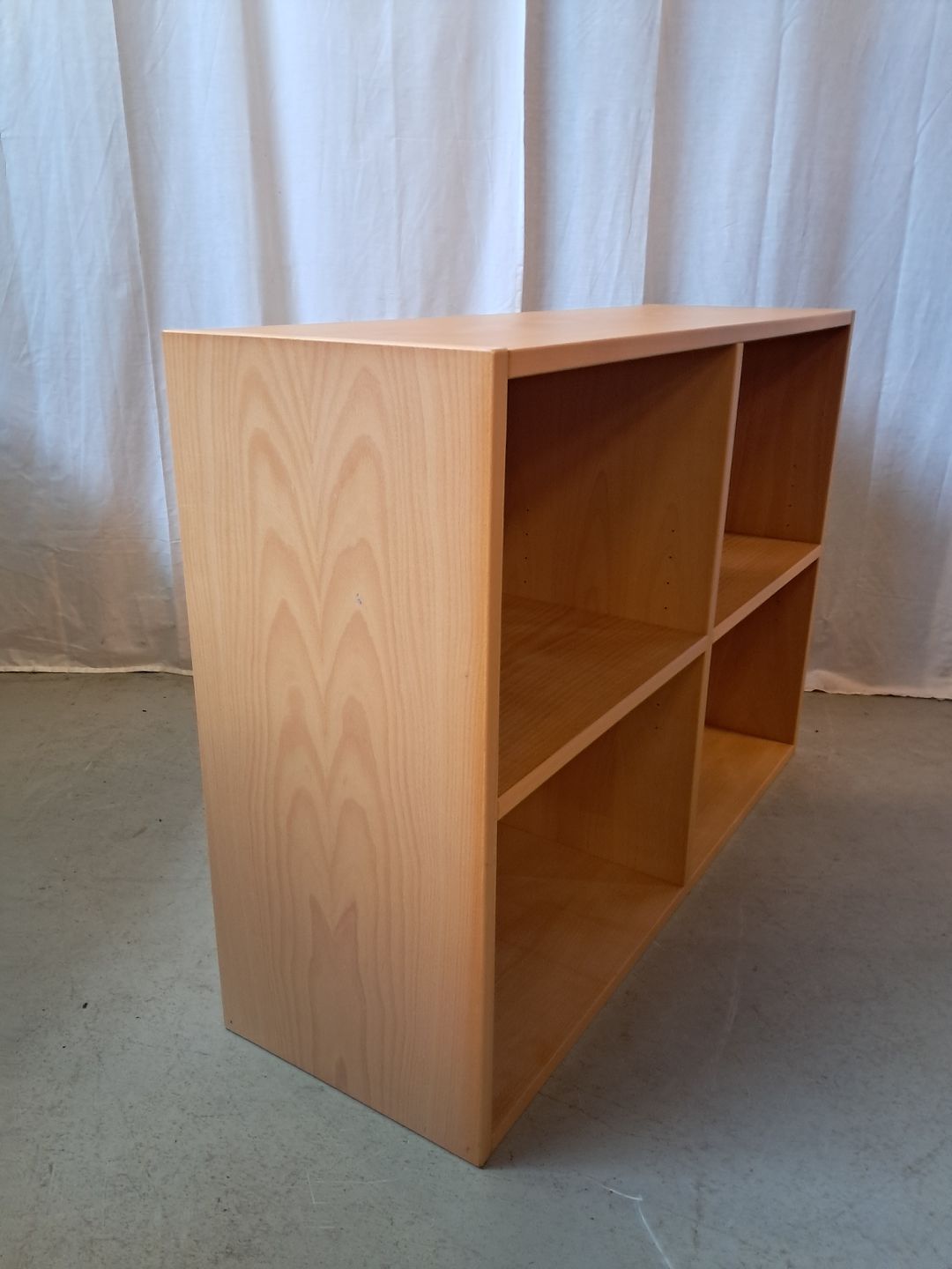 Reol i fineret bøgetræ, fra 1990erne.Den har brugsspor.