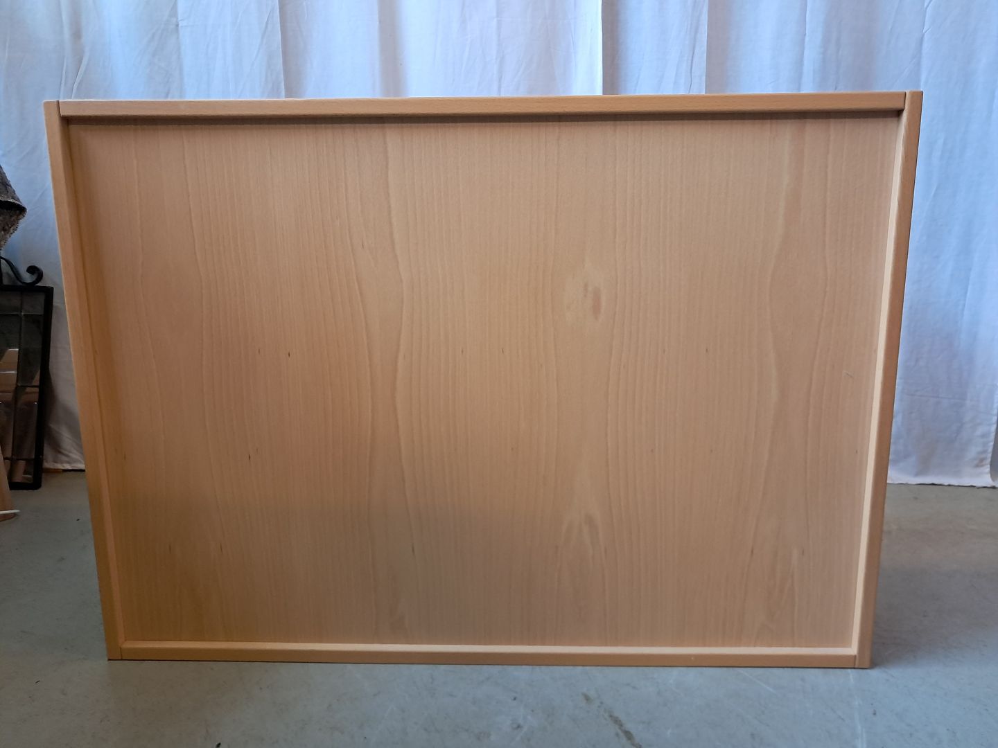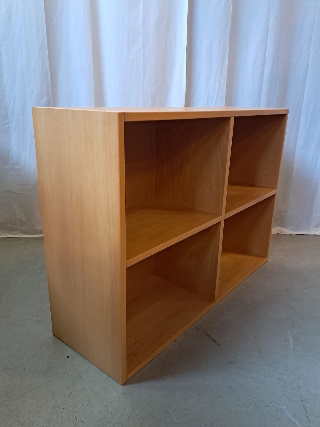 Reol i fineret bøgetræ, fra 1990erne.Den har brugsspor.