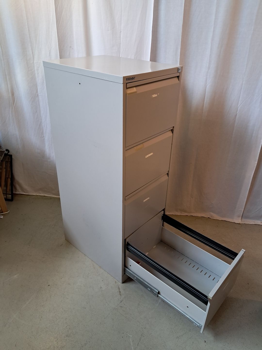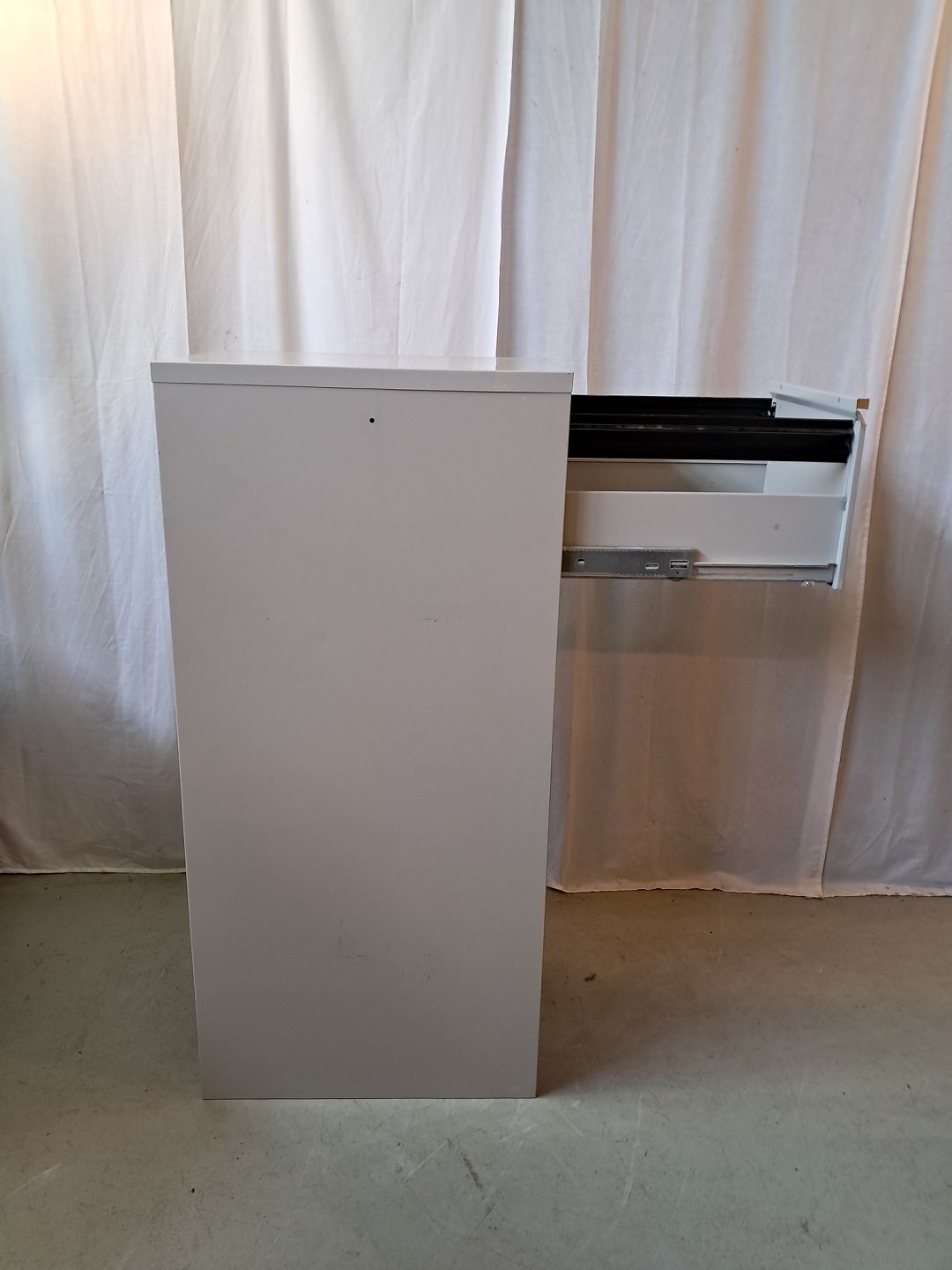 Malet metal kommode/arkivskab, fra 1990erne.Det har brugsspor og der medfølger ikke nøgle.