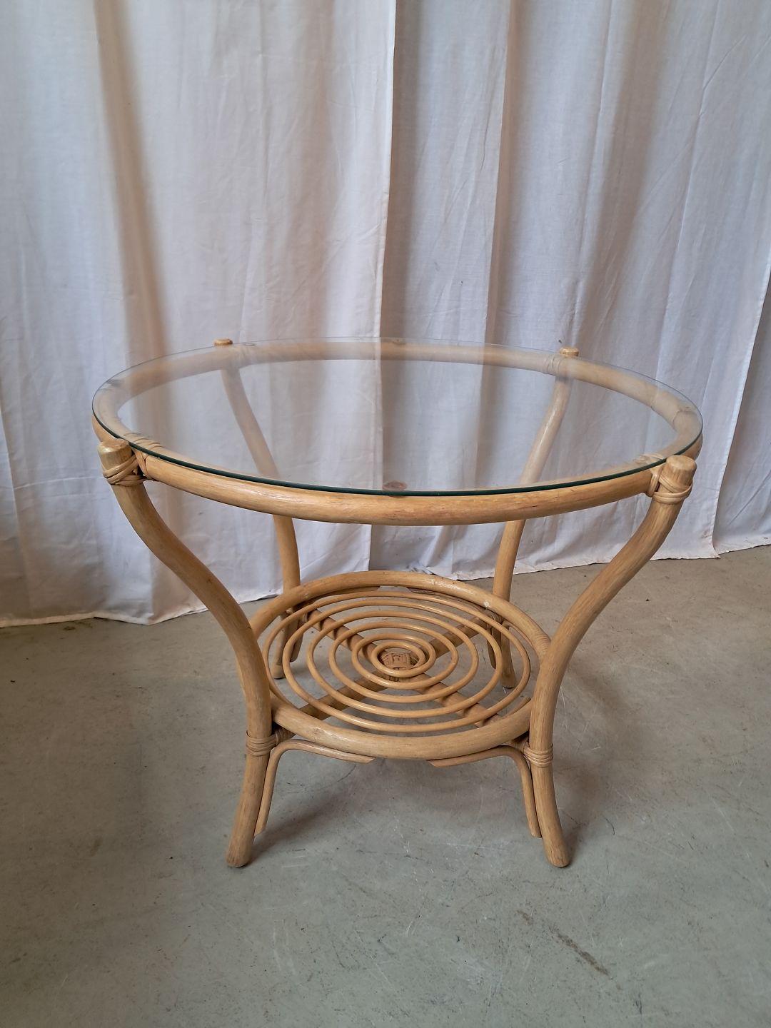 Bord i bambus med glasplade, fra 1990erne.Det har brugsspor.