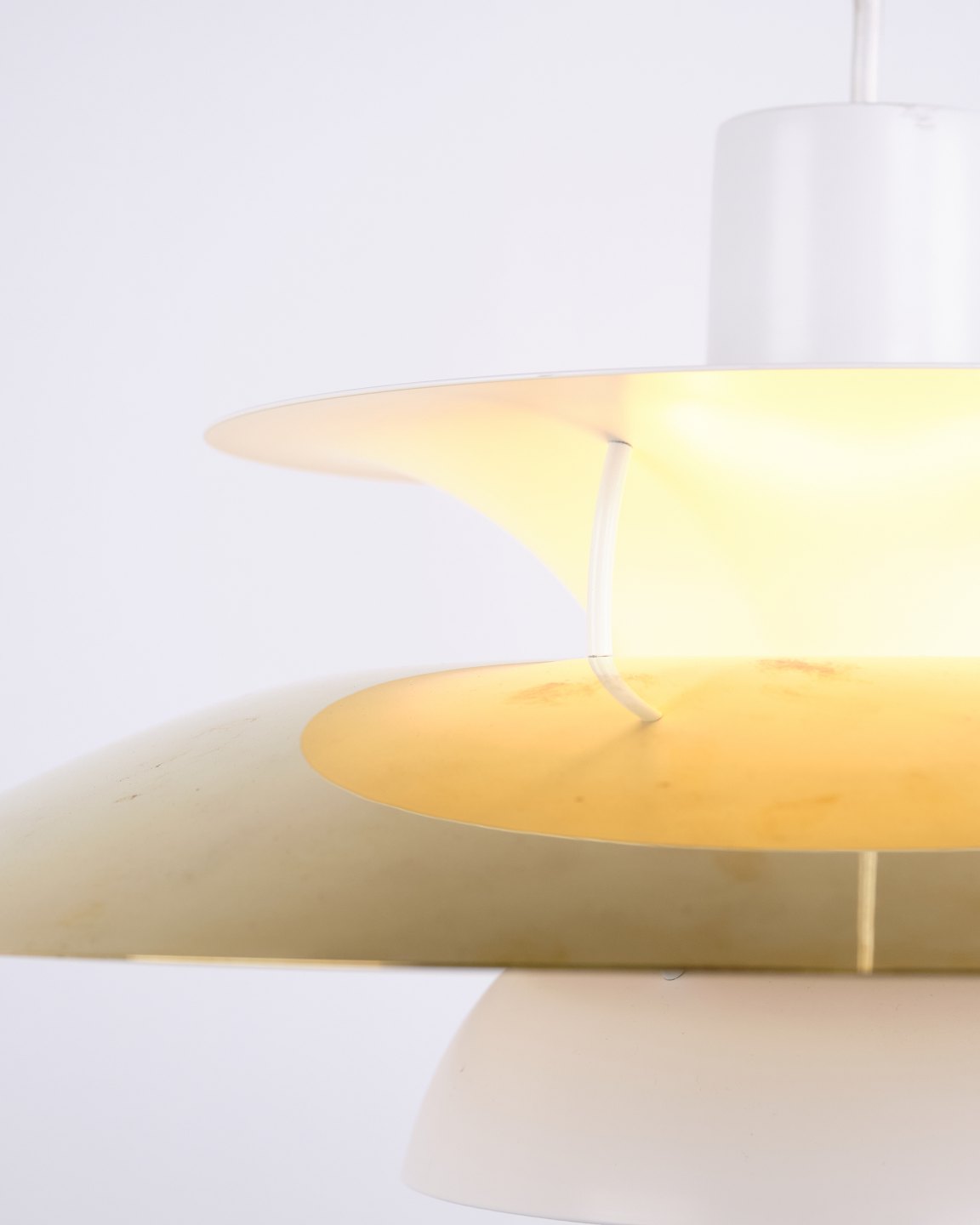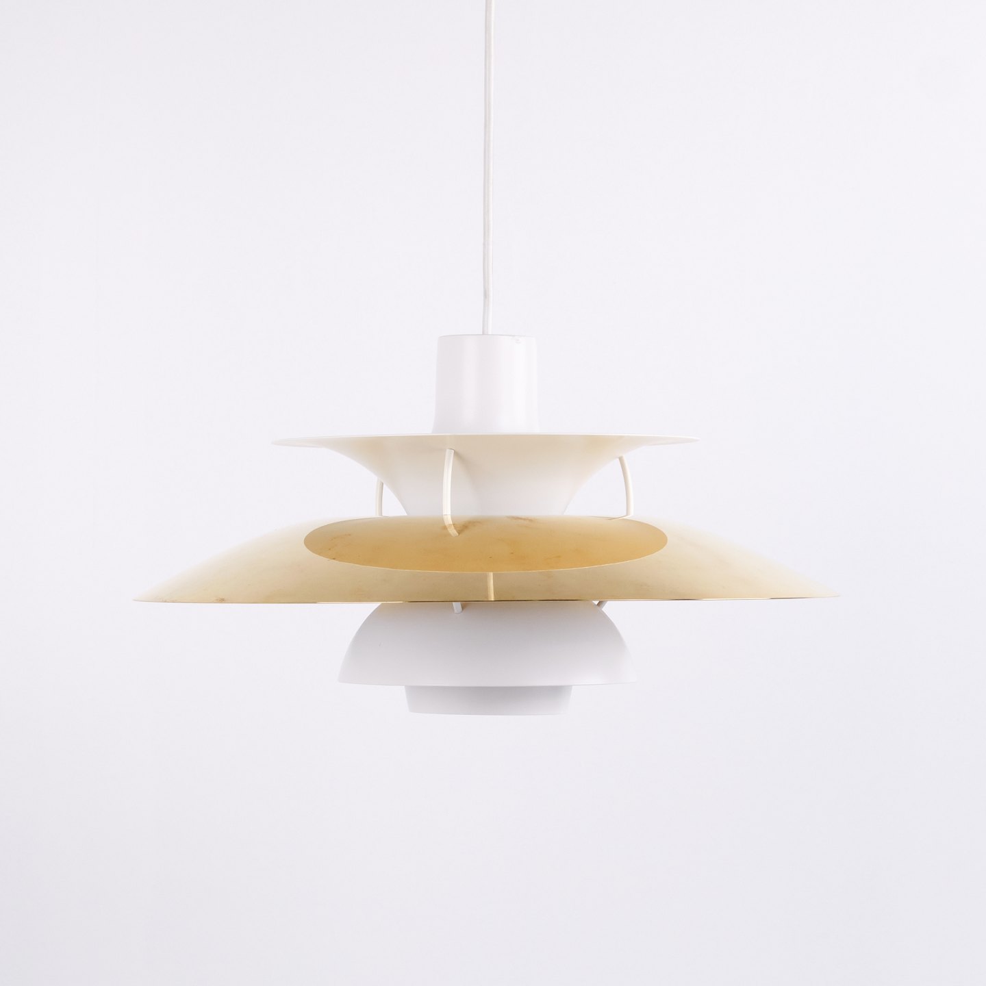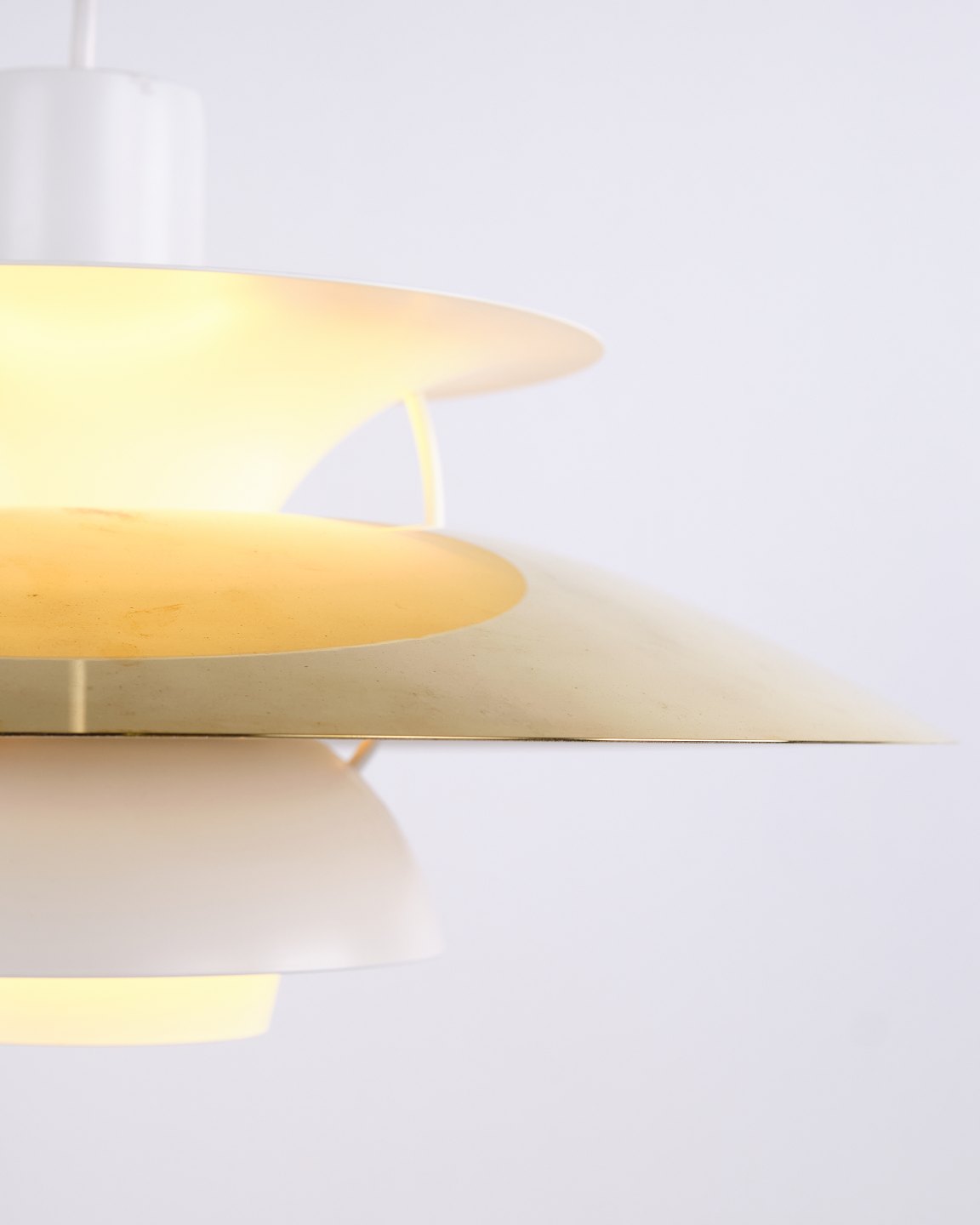 PH 5 Pendelleuchte aus Messing von Louis Poulsen, entworfen von Poul Henningsen. Klassische dänische Leuchte mit blendfreiem und funktionalem Licht.— Herkunft: Dänemark