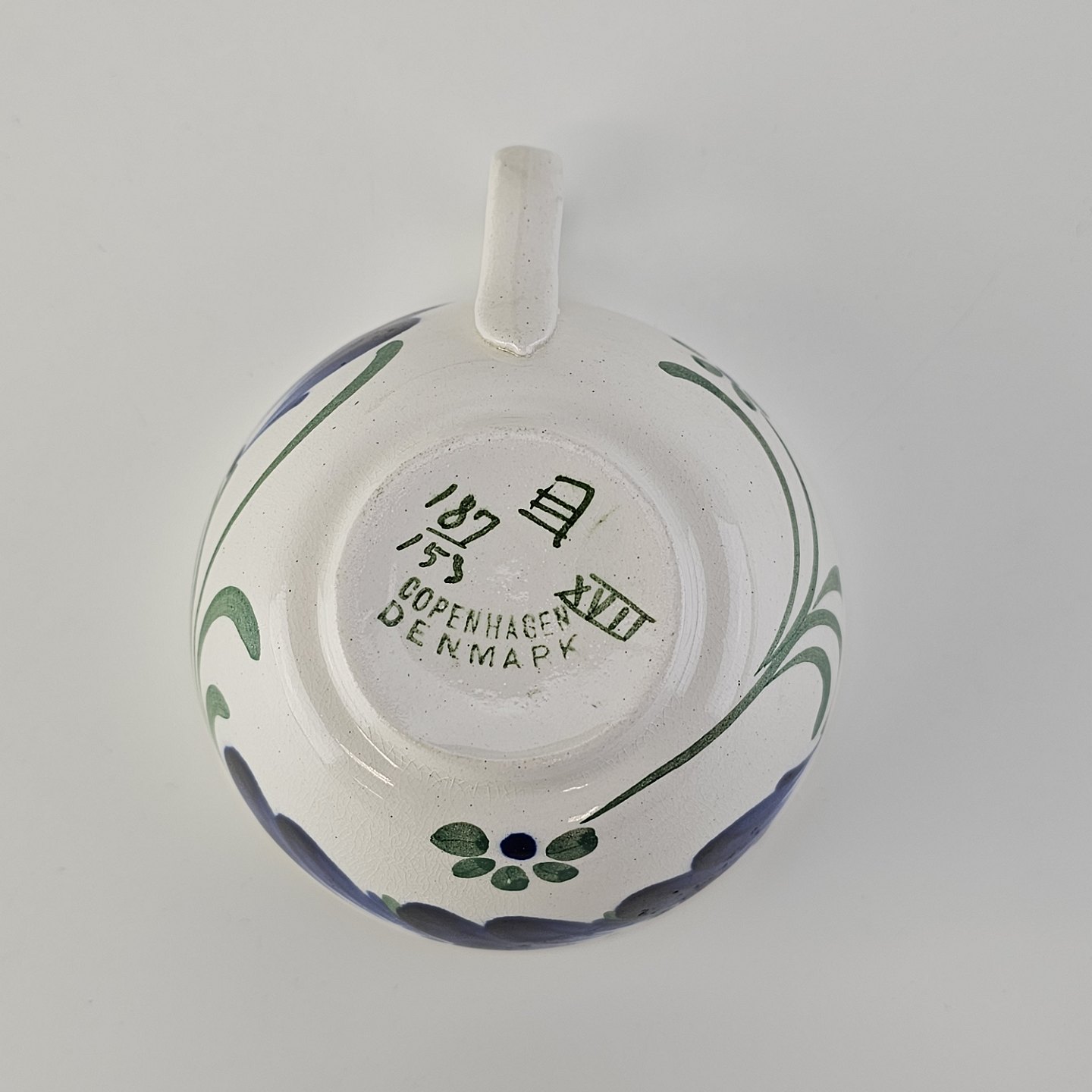 Kop med underkop i hvid fajance fra stellet Blå CenerarierNr. 187/153