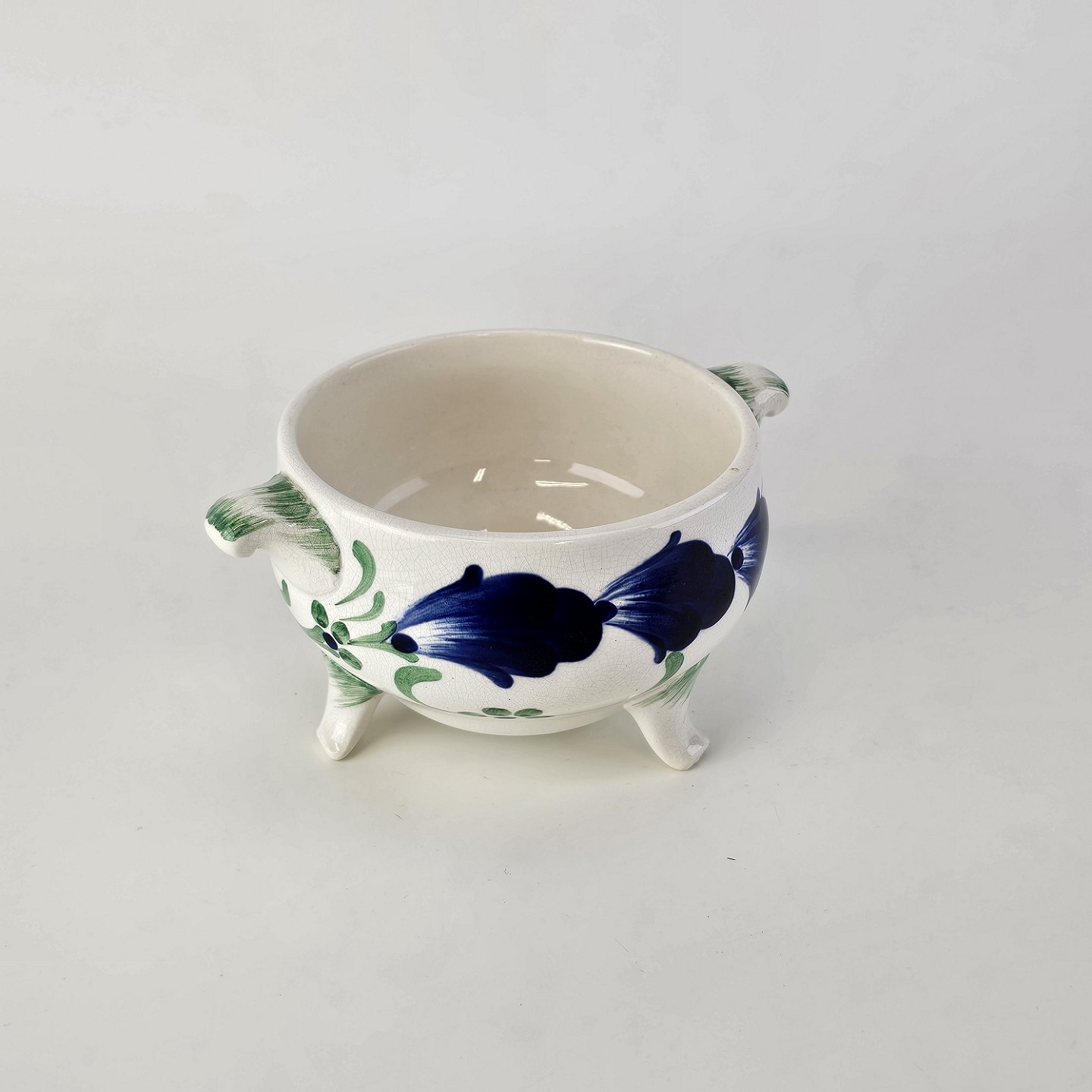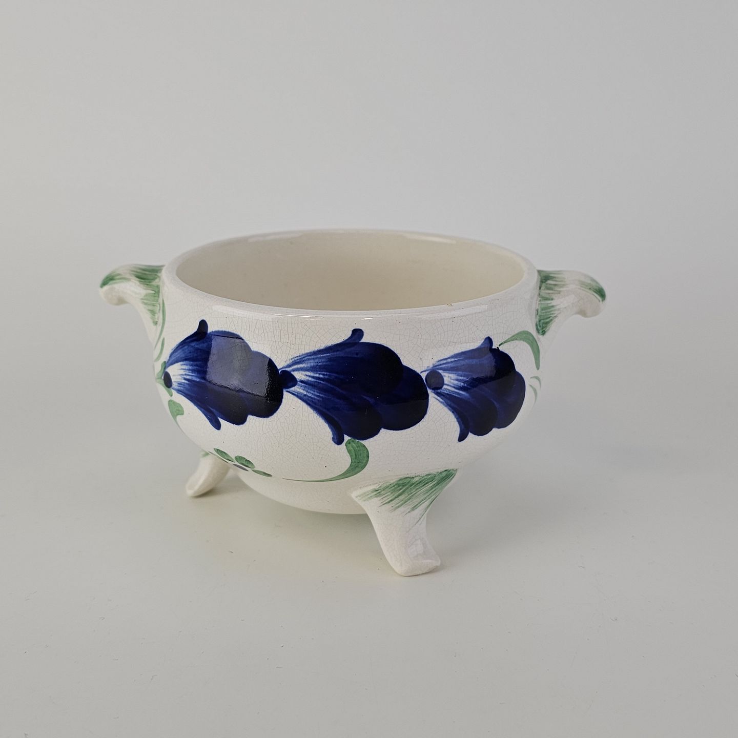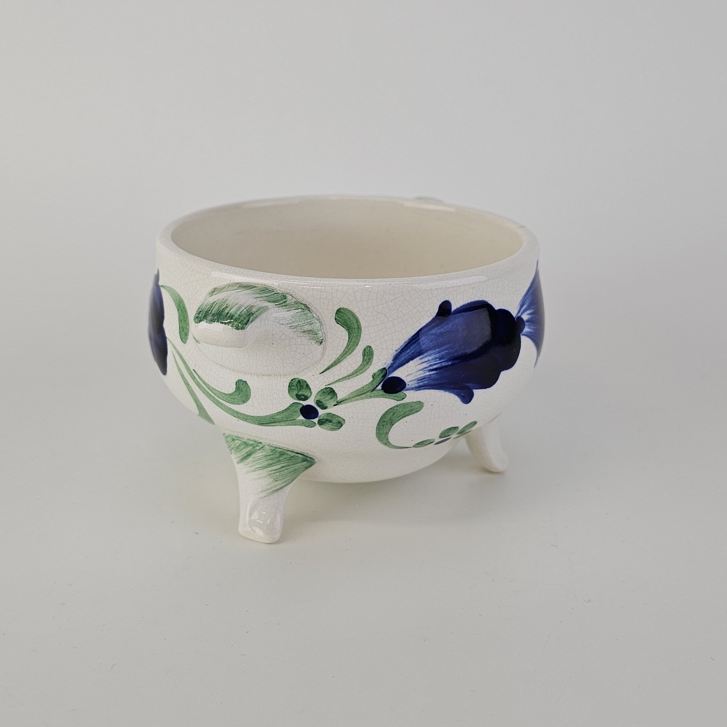 Sukkerskål i hvid fajance fra stellet Blå CenerarierNr. 187/360