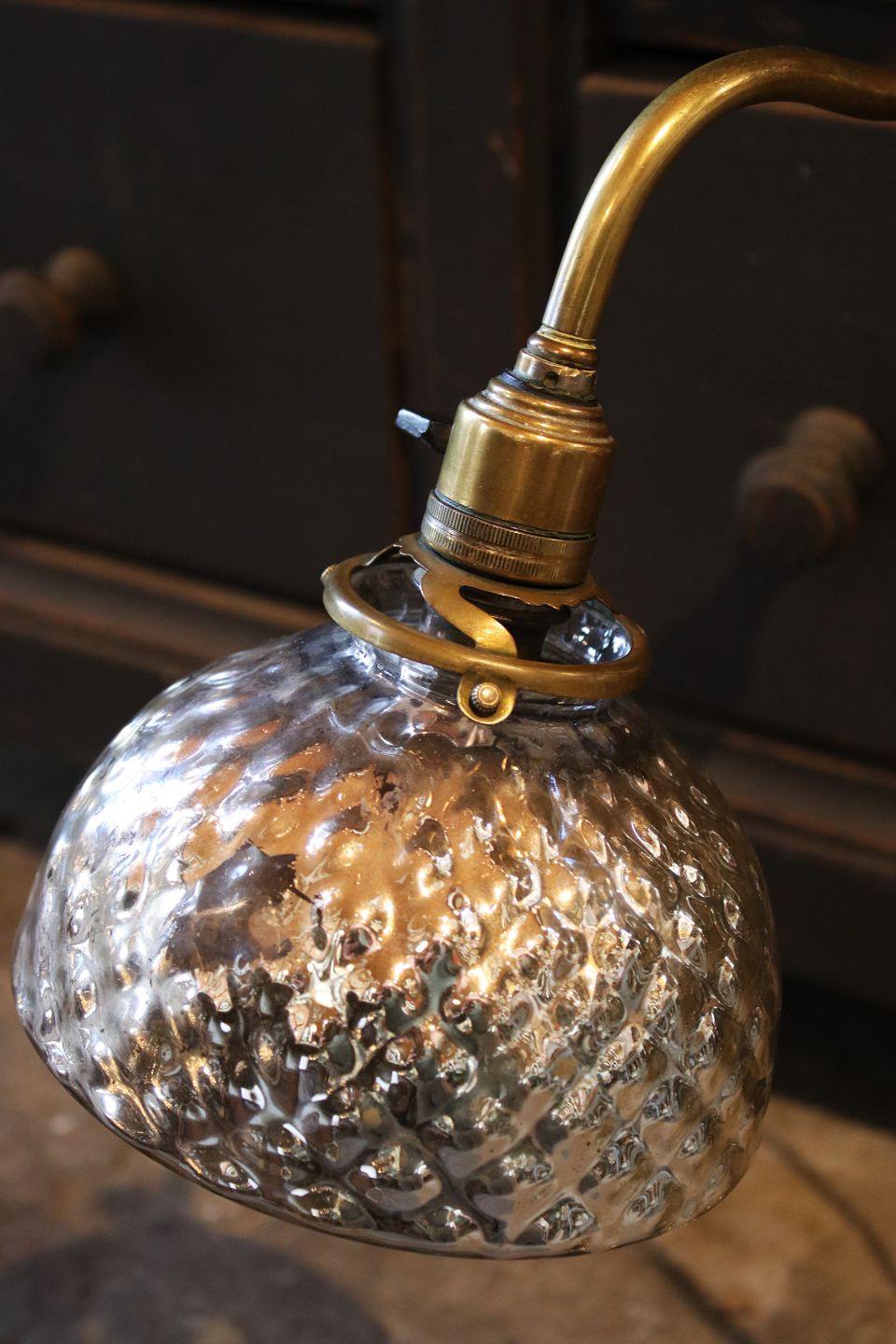 We offer a wide selection of old furniture with character, prism chandeliers and French church candlesticks.
