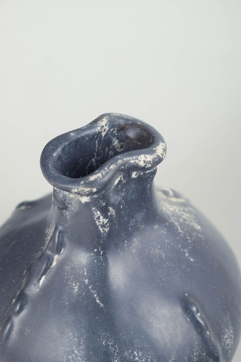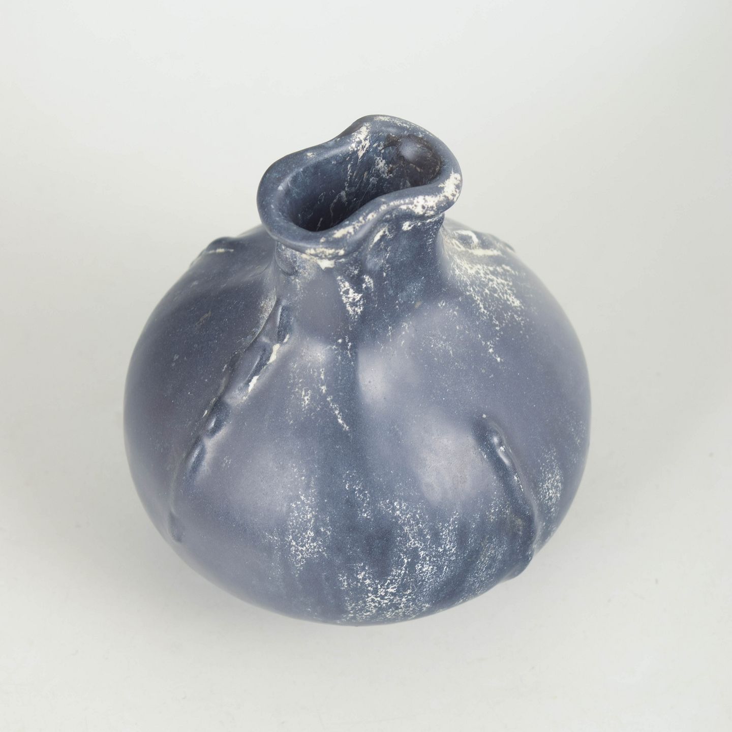 Svend Hammershøi for Kähler, vase med bølget rand og dobbeltglasur.Kompakt vase i glaseret lertøj med rund korpus og karakteristisk bølget rand. Udført i dobbeltglasur i mørke grå og sorte nuancer med let metallisk skær og levende spil i overfladen.