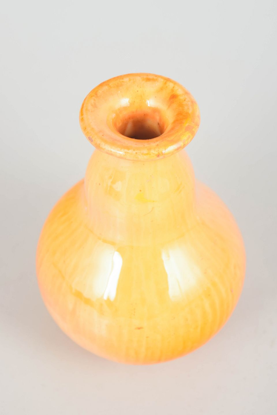 Svend Hammershøi for Kähler, vase med gul glasur.Elegant vase i glaseret lertøj med blød balusterform og let udsvungen rand. Udført i lys gul glasur med varme orange toner og fin vertikal stribning i overfladen, typisk for Hammershøis arbejde med levende glasurer.