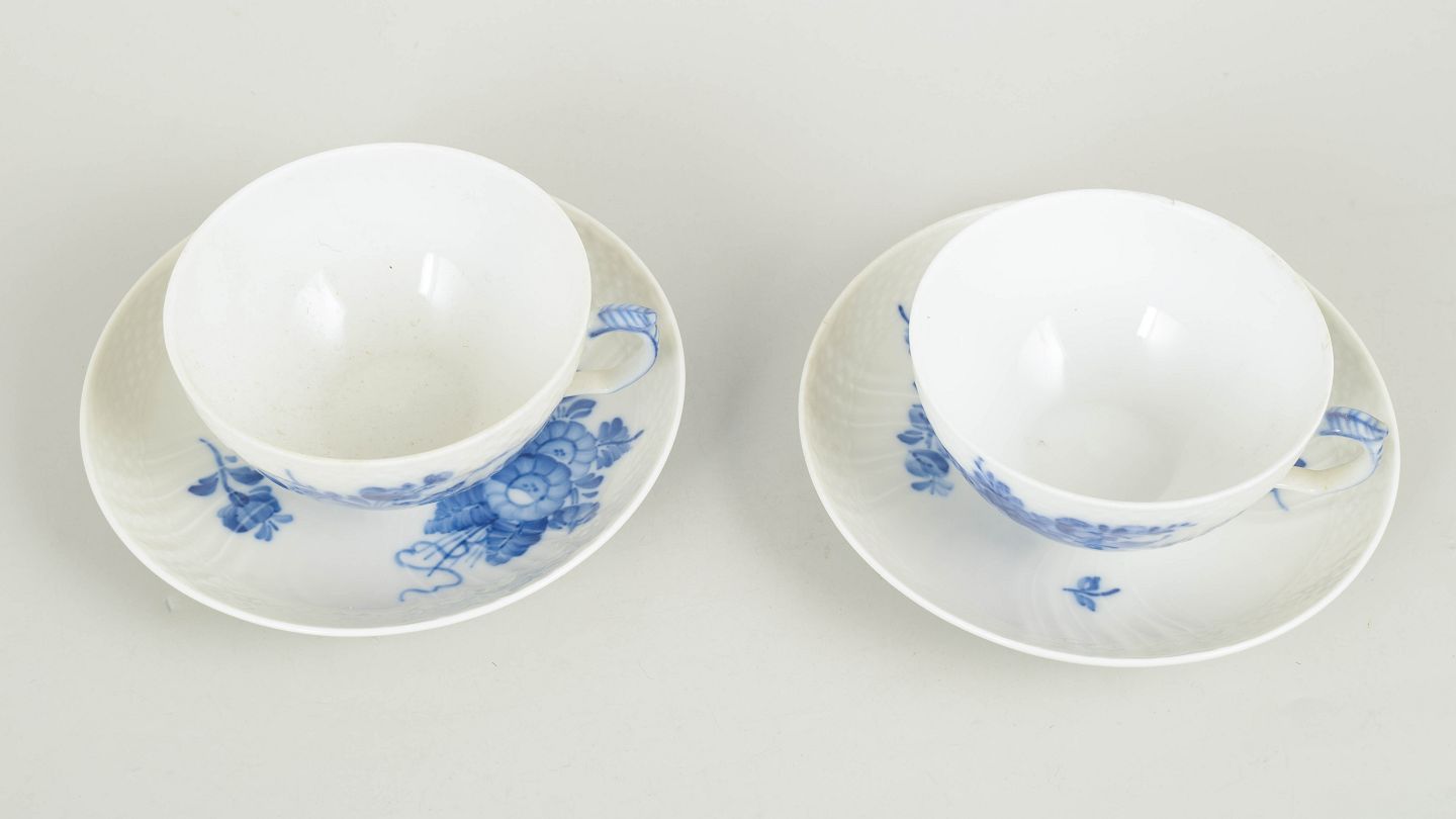 Royal Copenhagen, Blå Blomst Svejset sæt af to tekopper med tilhørende underkopper.Beschreibung: