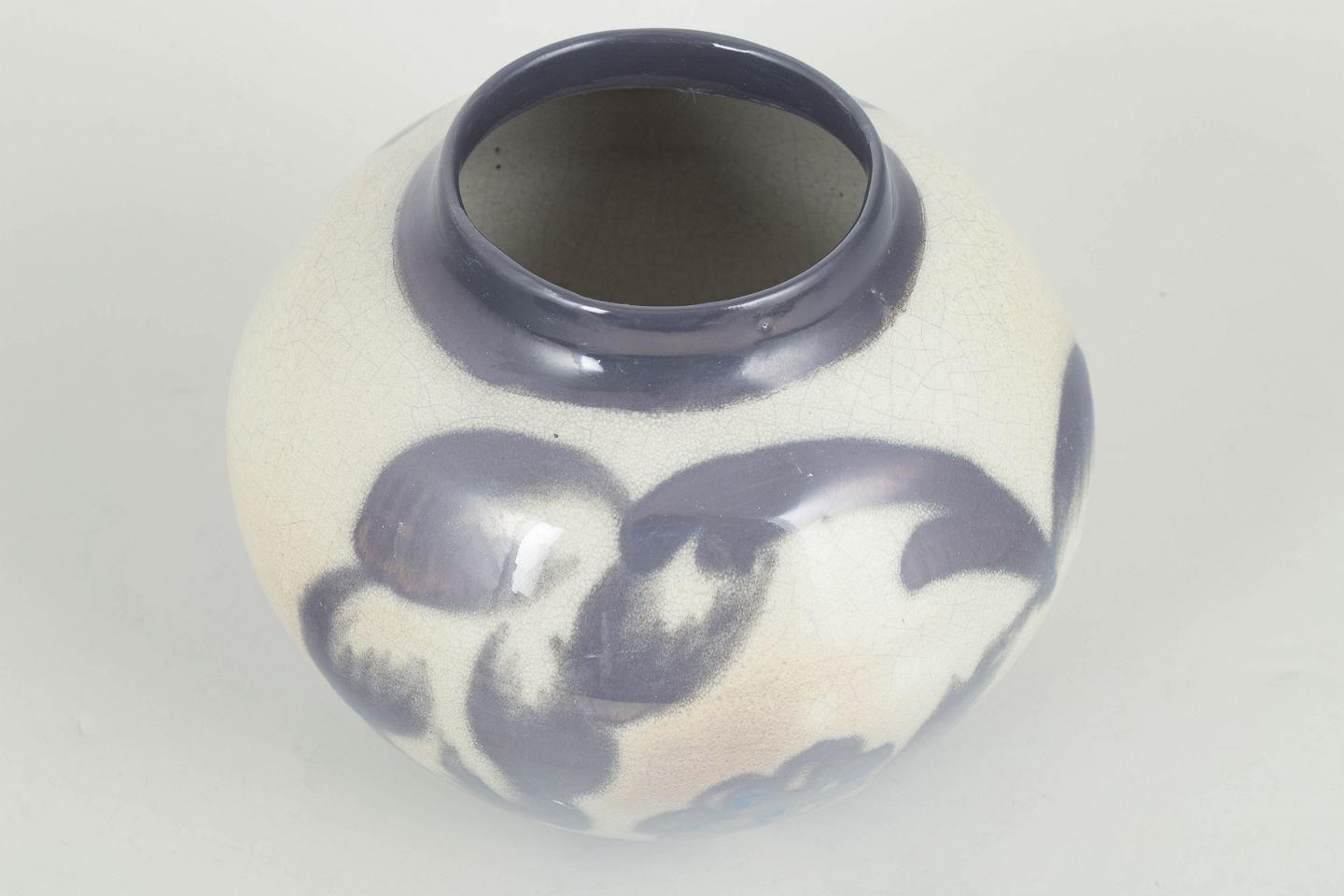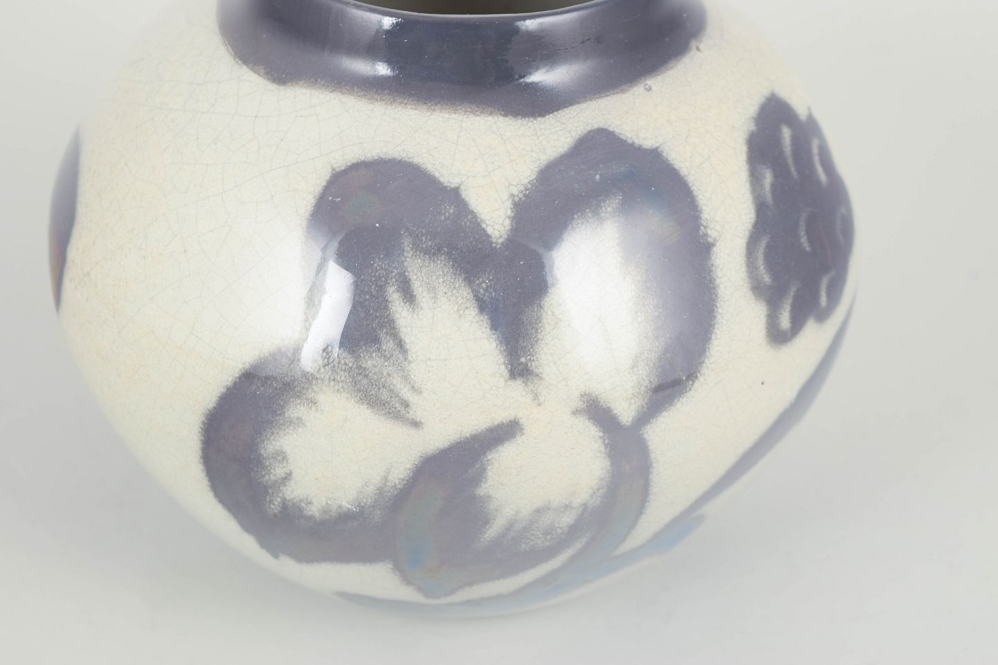 Edgar Böckman, unika vase.Organisk formet vase i keramik med blød, rund korpus og håndmalet dekoration i blåviolette nuancer på lys bund. Signeret EB under bunden.