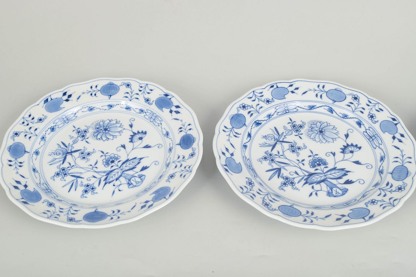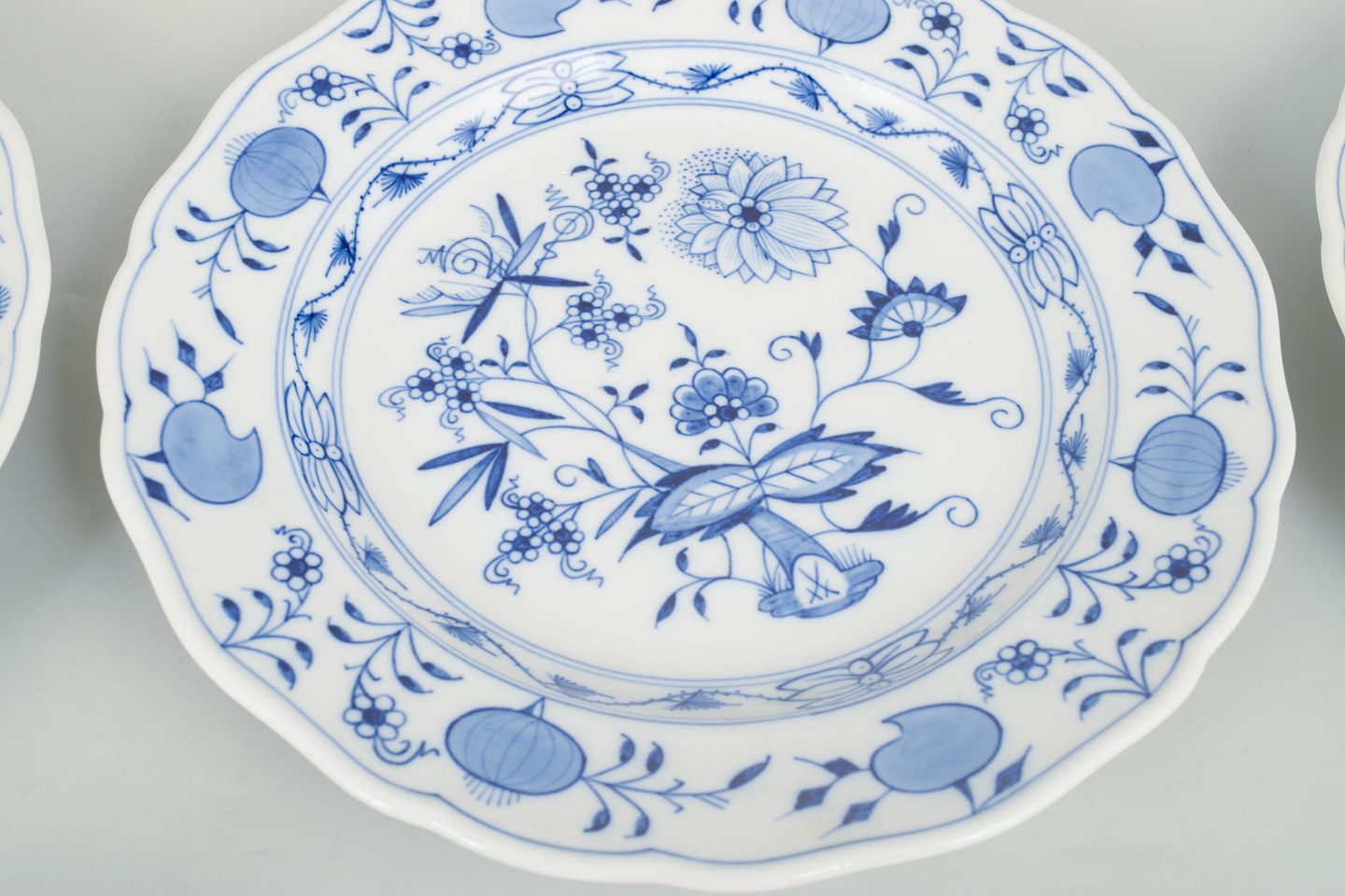 Meissen løgmønster, sæt af tre middagstallerkener.Beschreibung: