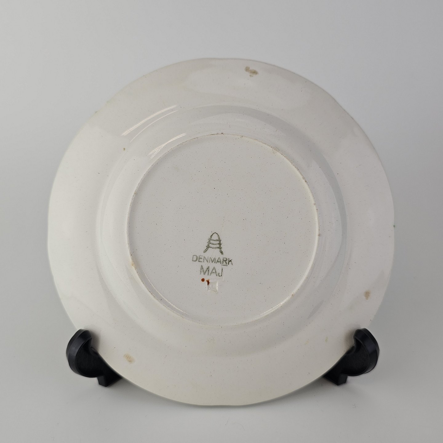 Flad kagetallerken i fajance fra stellet Maj fremstillet i perioden 1941-1966.Formgiver Nils Thorsson