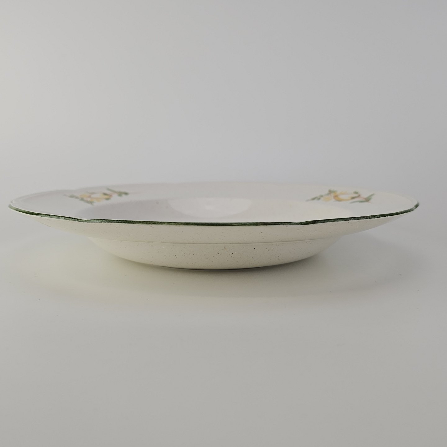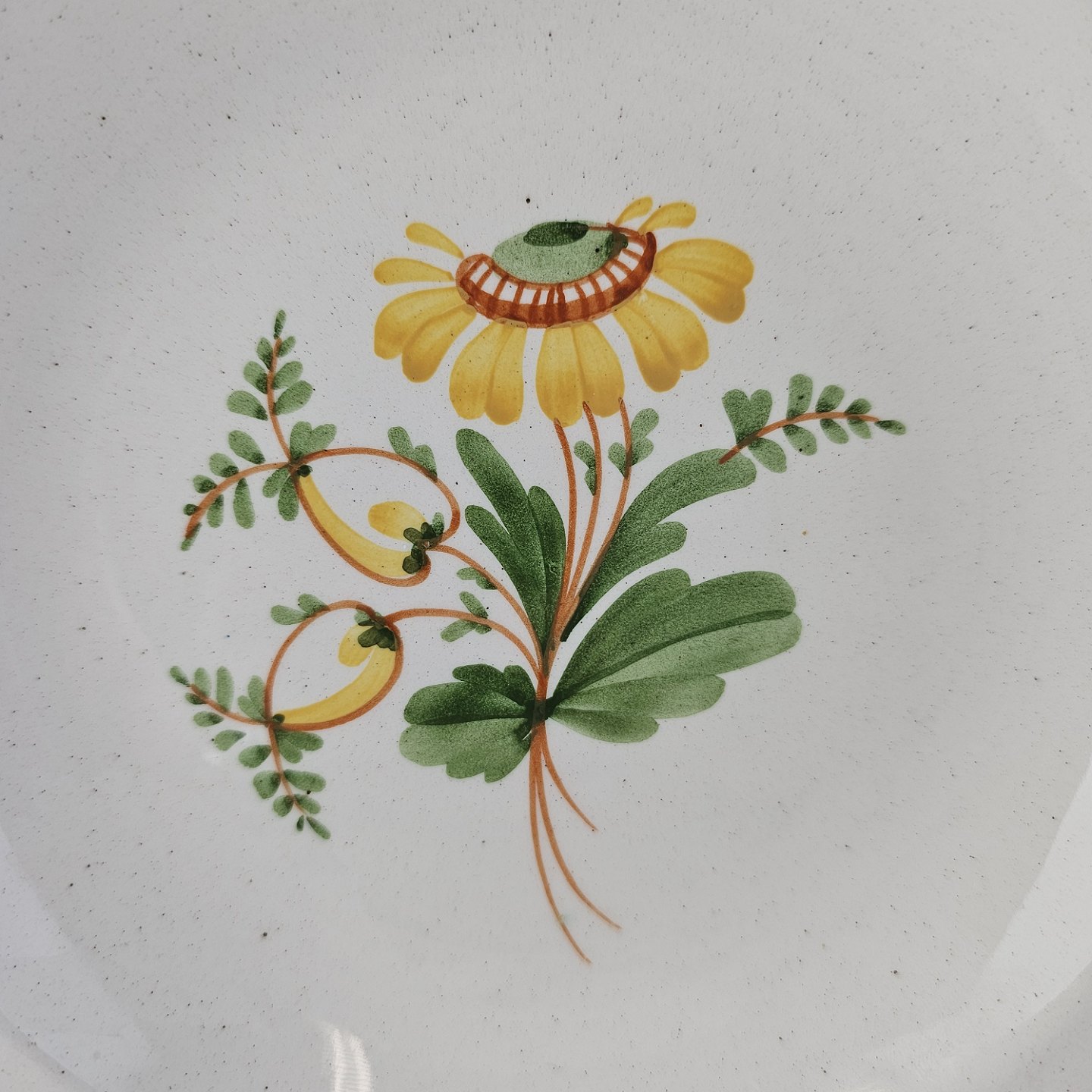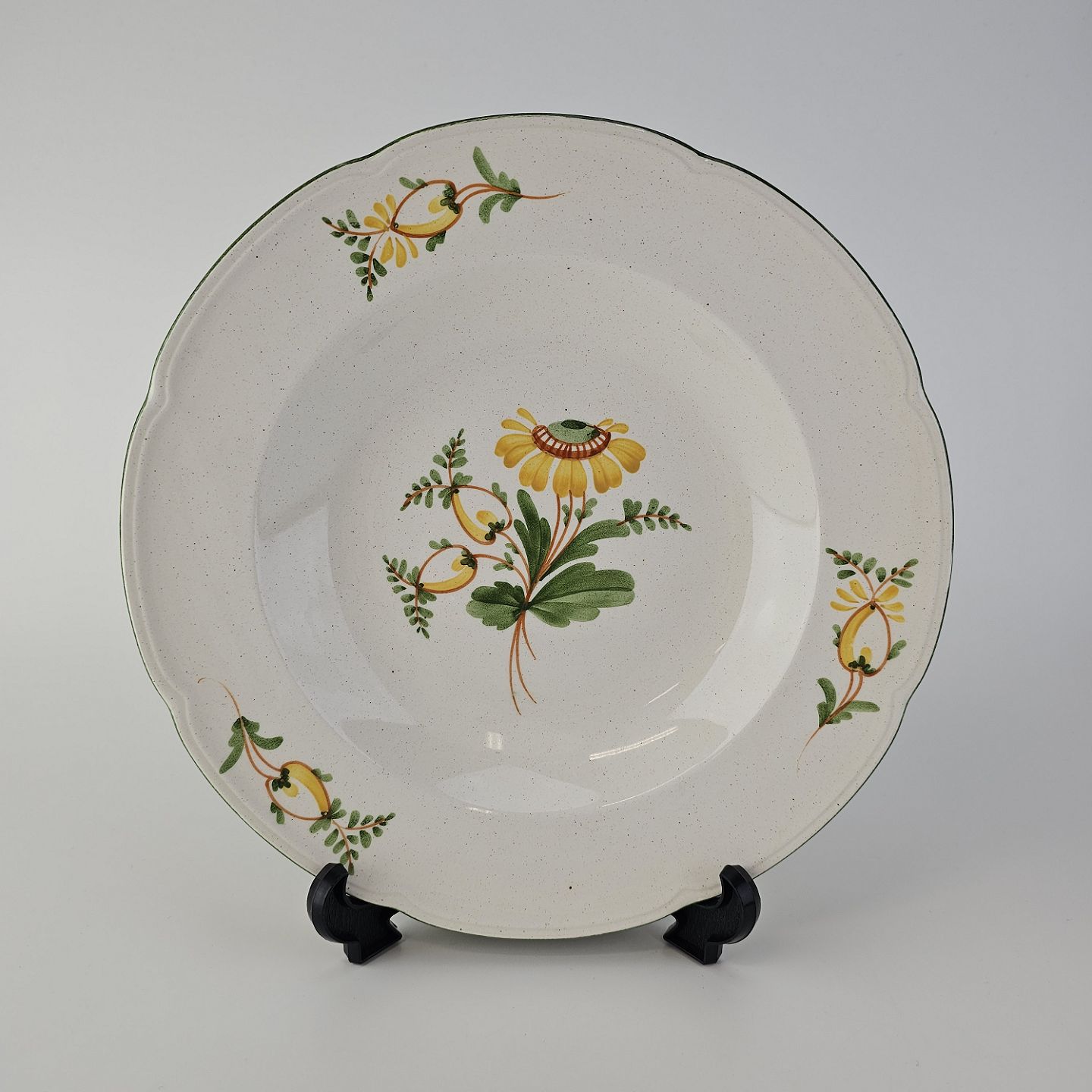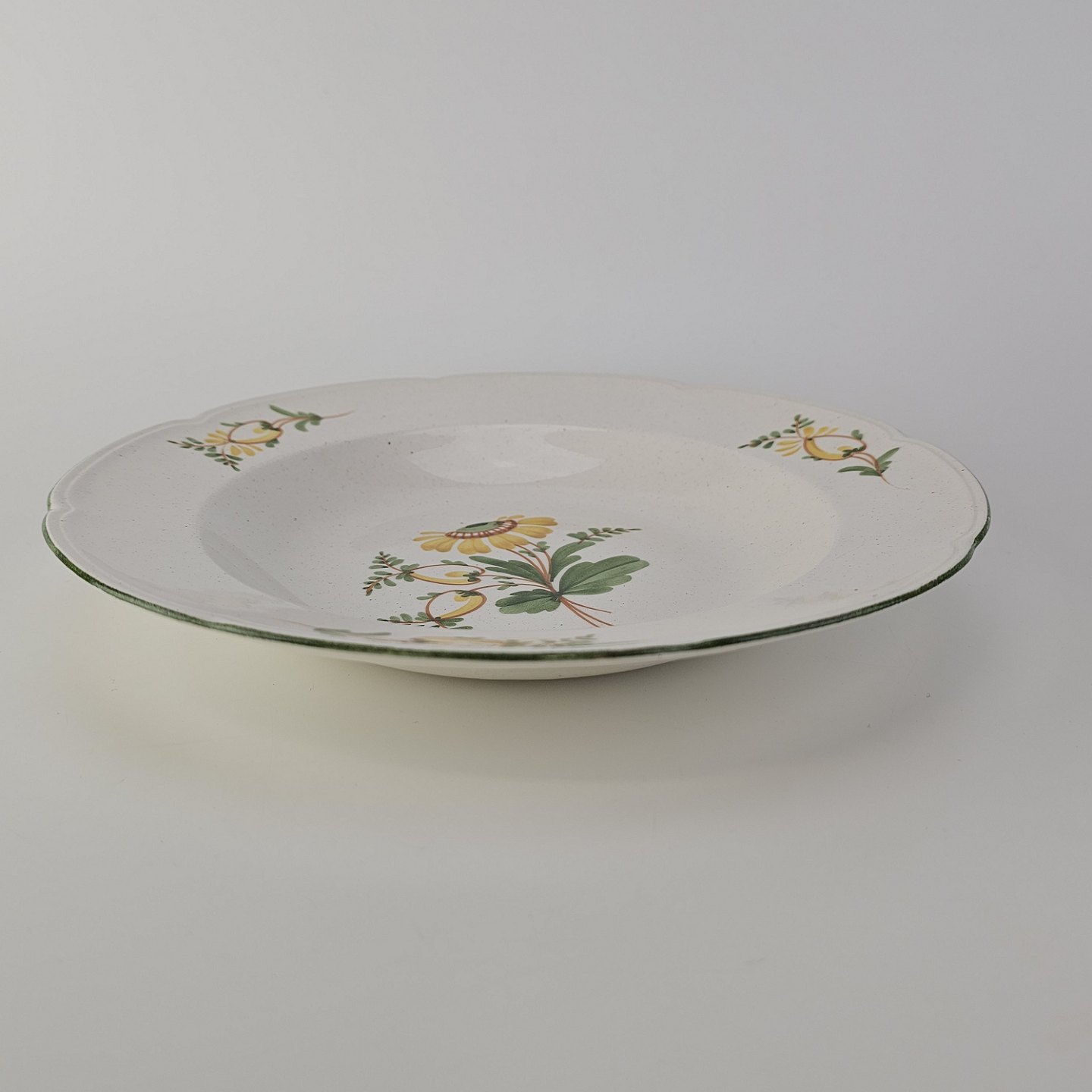 Dyb tallerken i fajance fra stellet Maj fremstillet i perioden 1941-1966.Formgiver Nils Thorsson