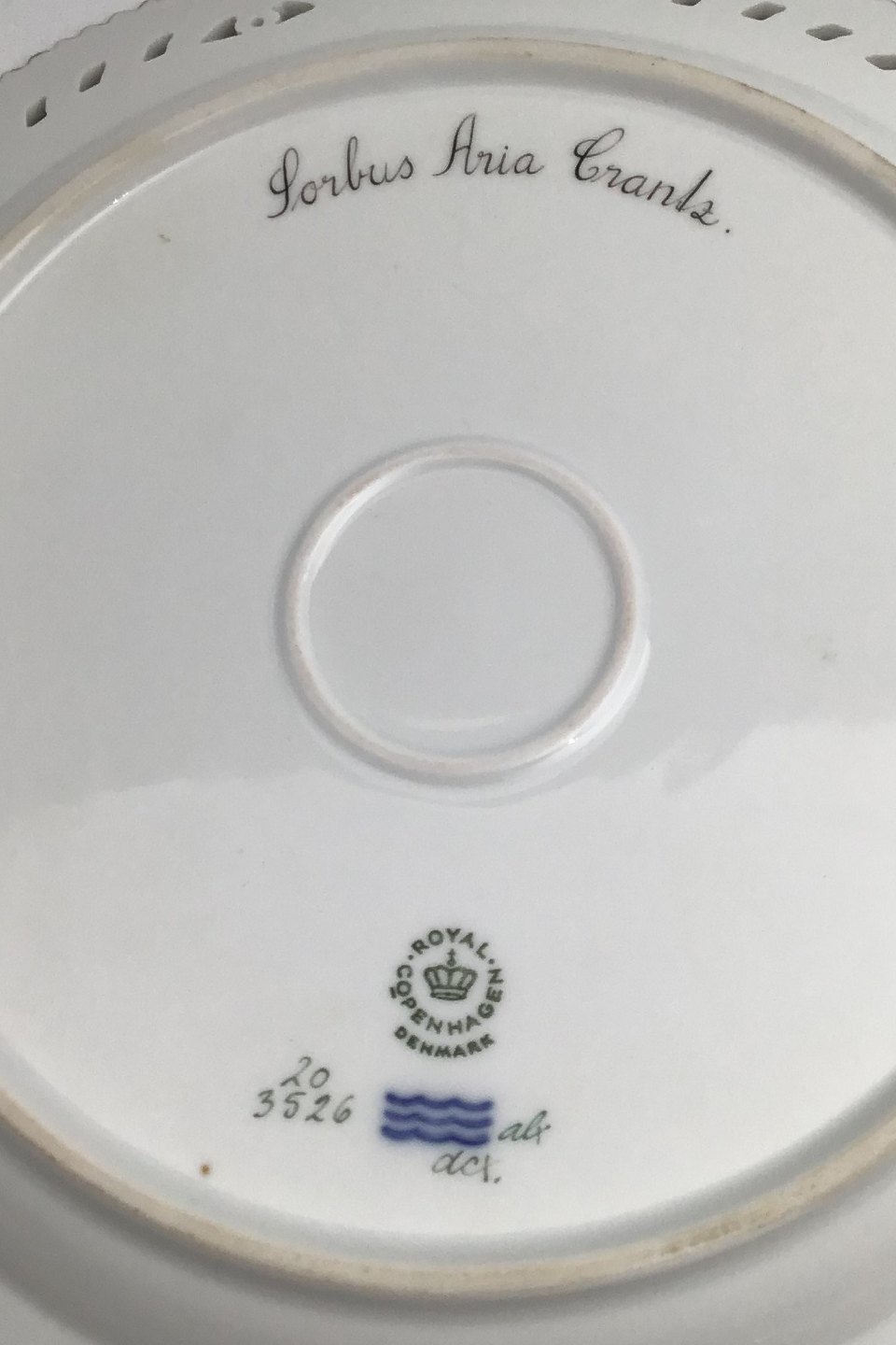 Royal Copenhagen Flora Danica Tallerken med gennembrudt kant No. 20/3526Måler 27cm / 10.63 inch. 1. Sort Latinsk tekst: Sorbus Aria Crantz
