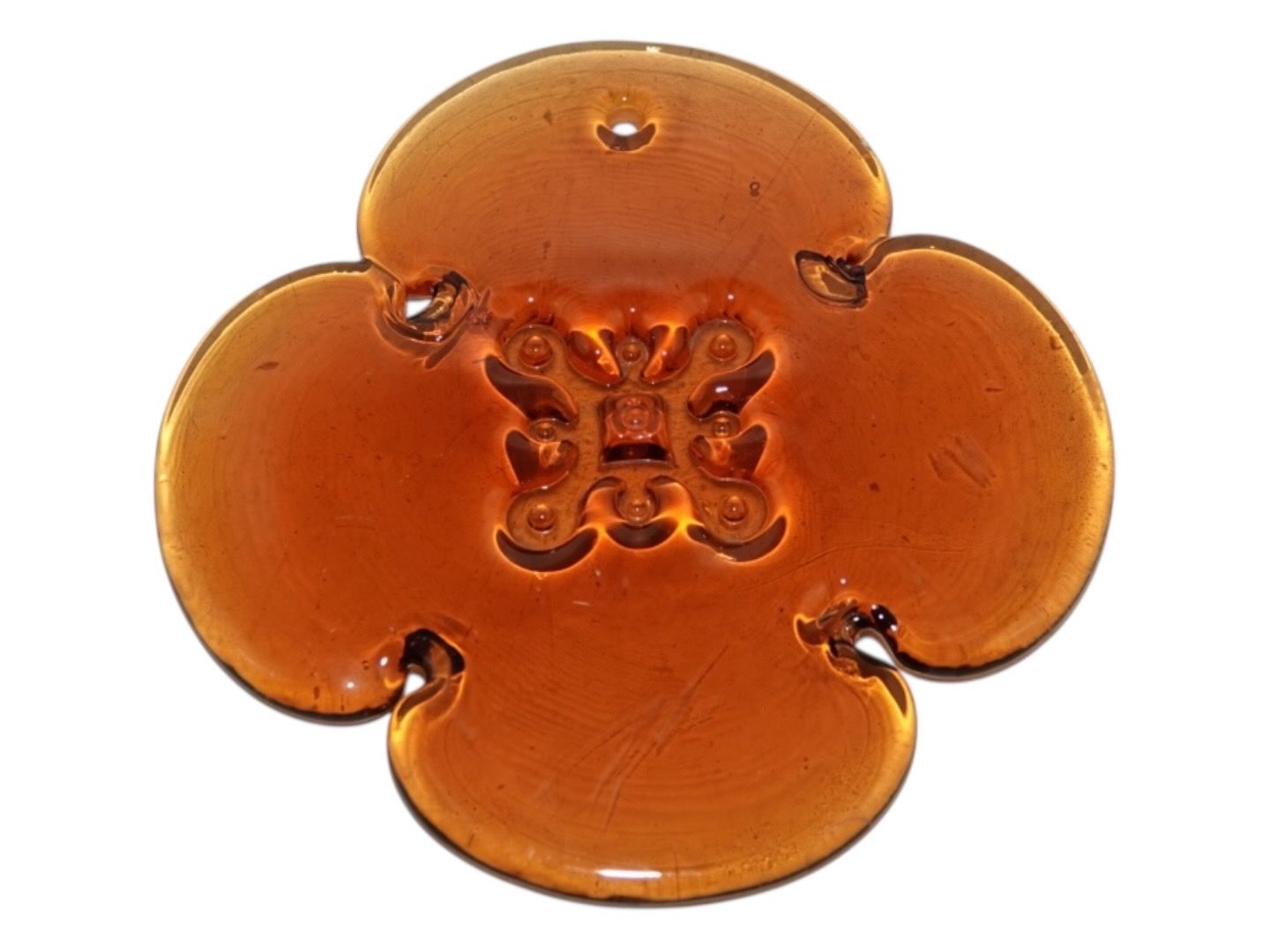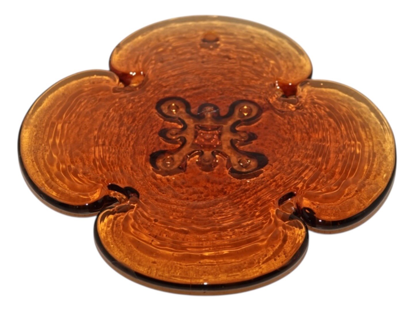 Holmegaard, karamelfarvet solfanger i form af firkløver fra 1970'erne.Måler 11,5 x 11,0 cm.