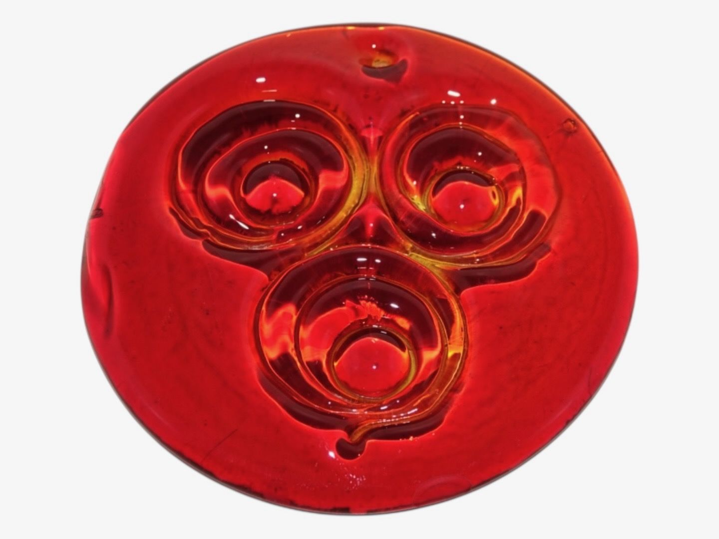 Holmegaard, rød solfanger fra 1970'erne.Diameter 10,0 cm.