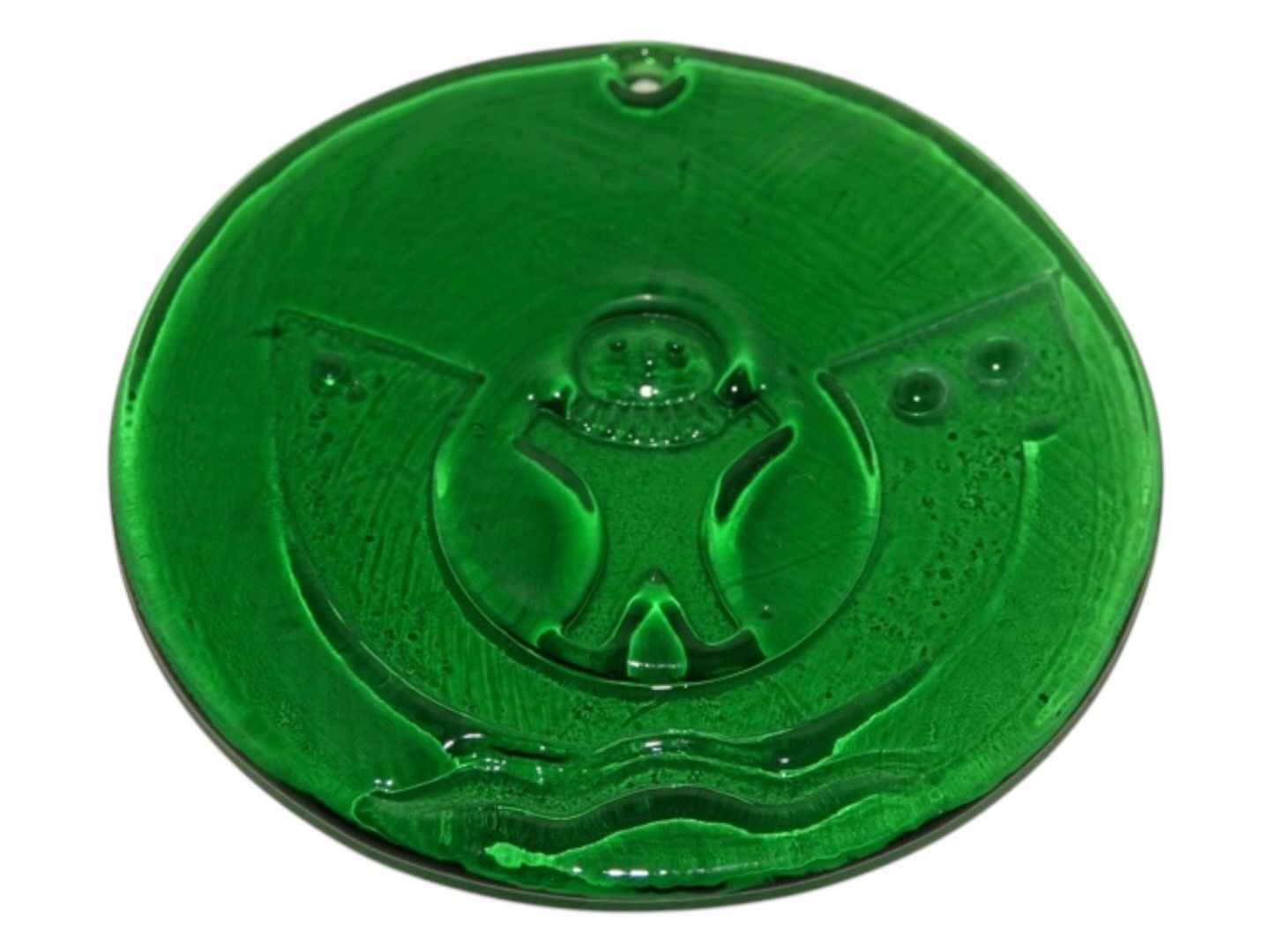 Holmegaard, lille grøn solfanger fra 1970'erne.Diameter 7,9 cm.