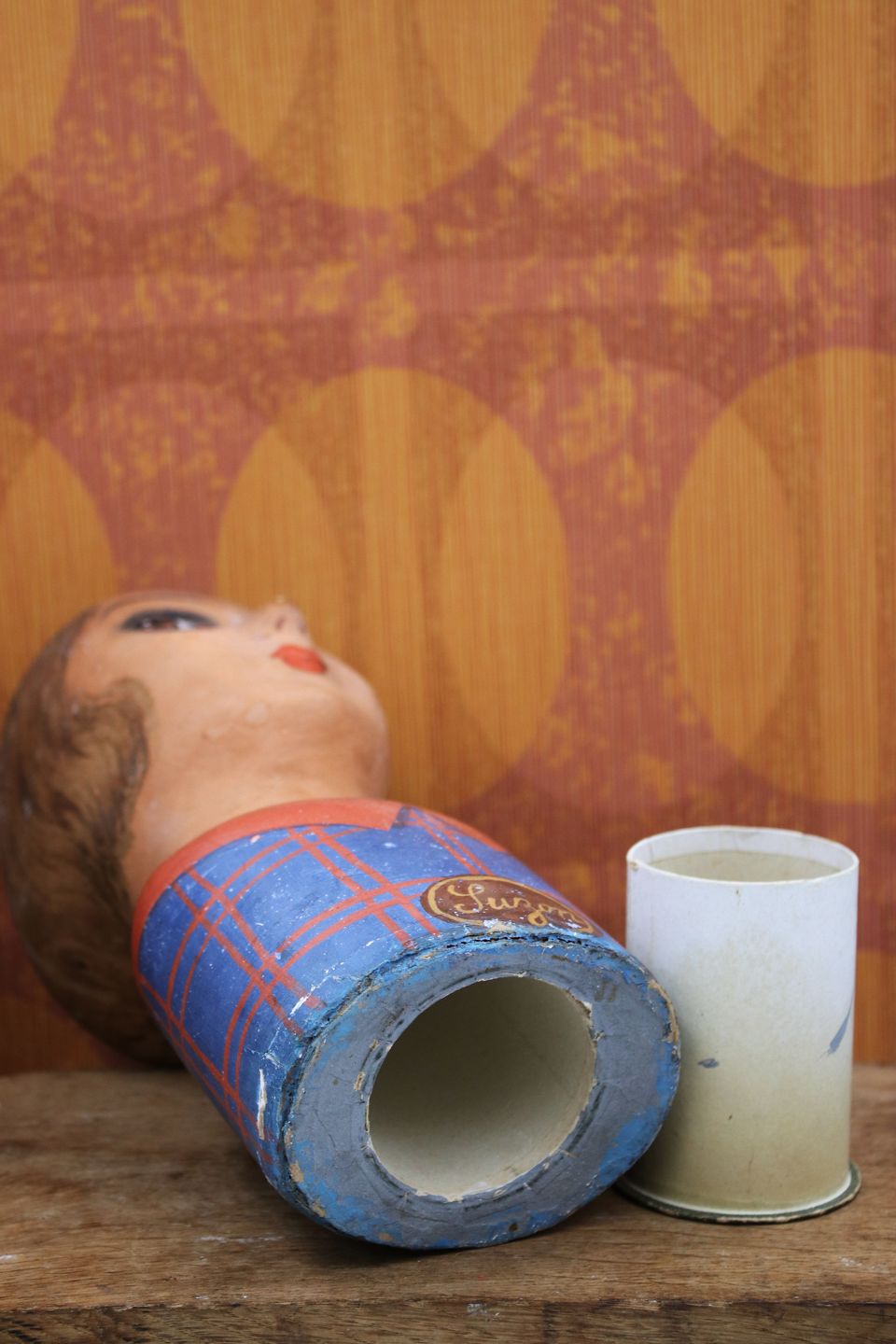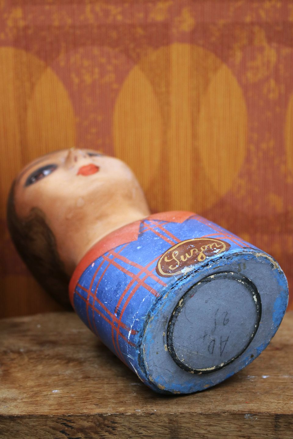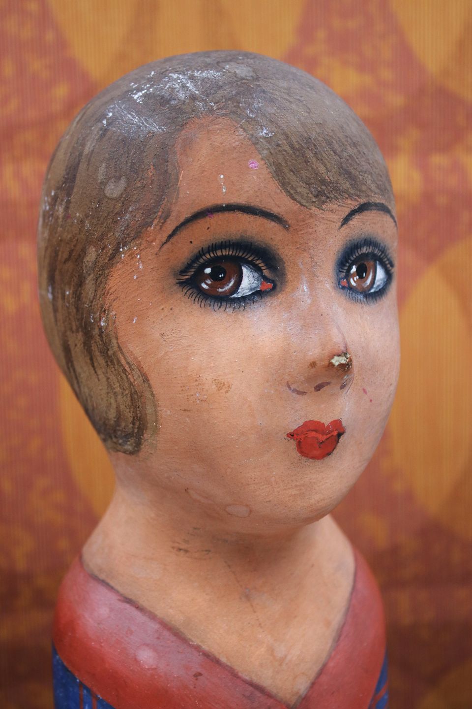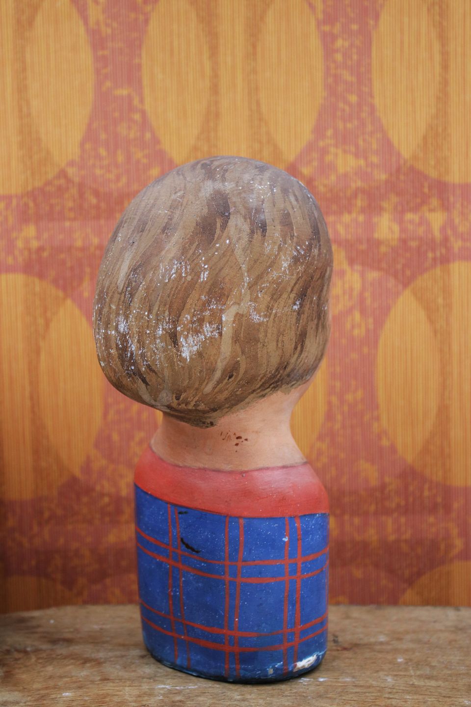 Originalt , antikt fransk mini paryk hoved (Millinerey head) fra 1800 talleti bemalet pap-maché