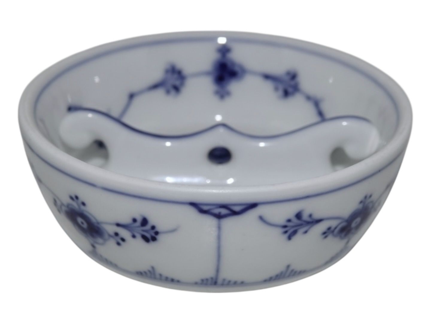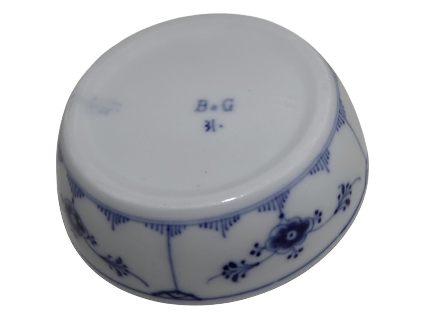 Bing & Grøndahl Blåmalet (Musselmalet), askebæger til pibe.Af fabriksmærket ses det, at denne er produceret mellem 1853 og 1895.