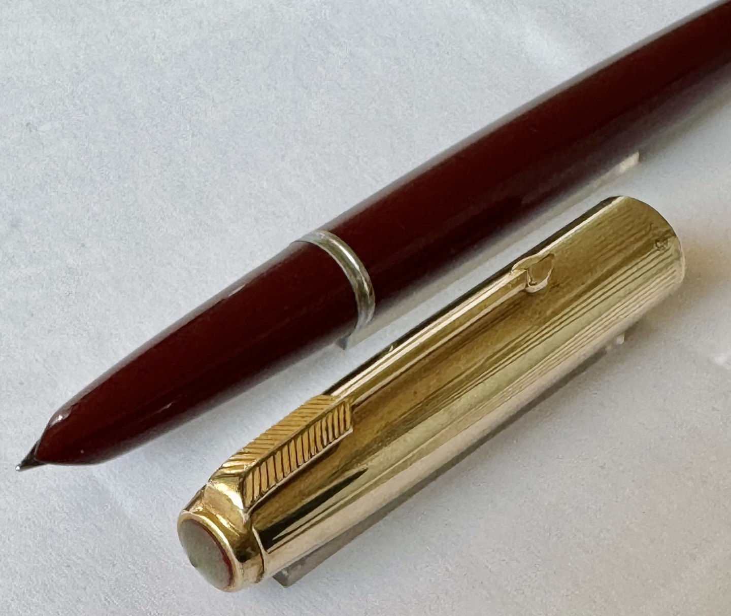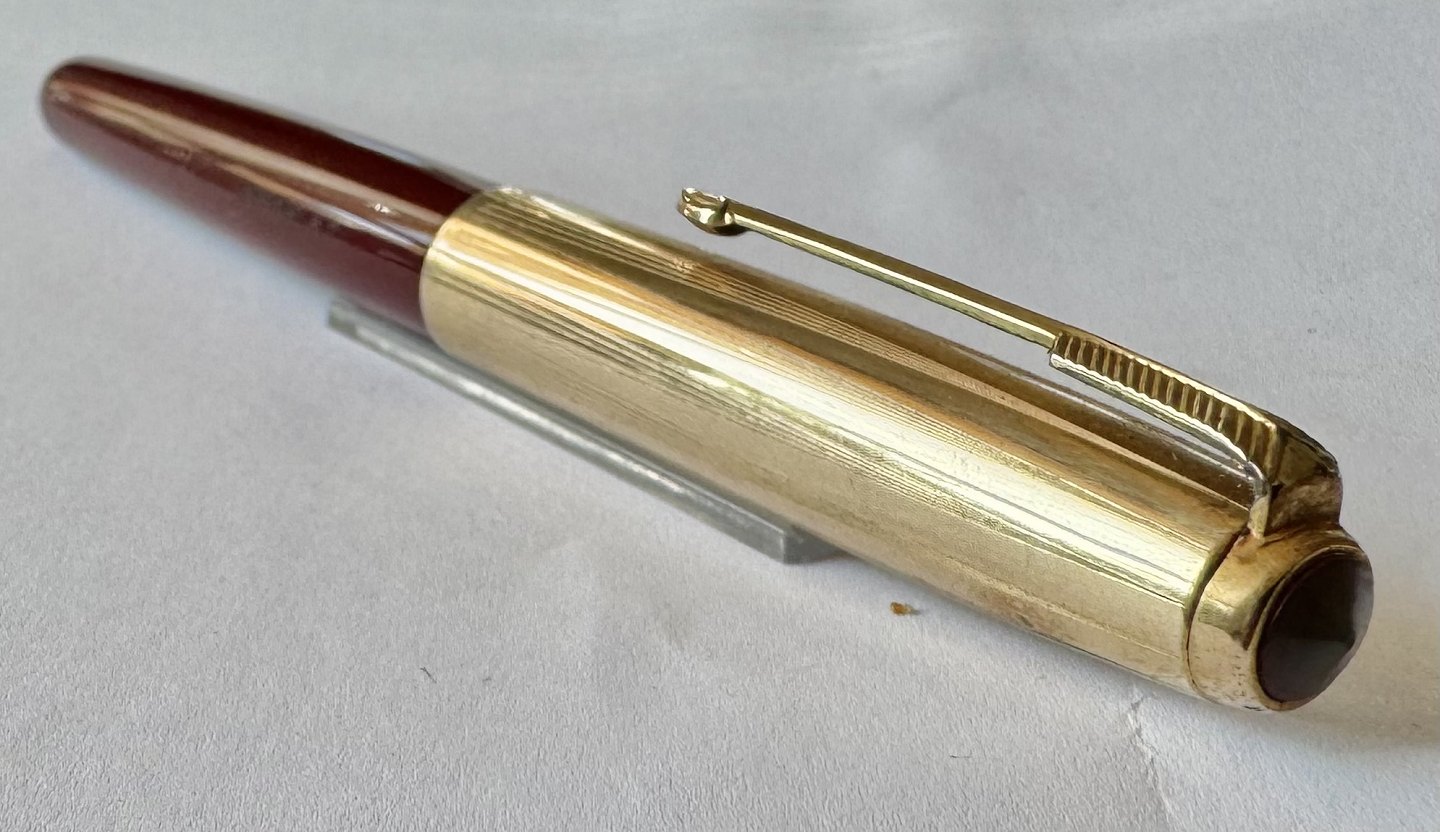 Skriveklar vintage fyldepen: Bordeaux Parker 51 fyldepen med guld double hætte. I god stand. Klar til at blive brugt. Ingen skader eller reparationer. PERSONLIGT NAVN INDGRAVERET. Almindelige brugsspor. L. 14 cm.KØBES & SÆLGES - PARKER 51 FYLDEPEN TIL SALG. LIGNENDE FYLDEPENNE KØBES COPENHAGEN DENMARK