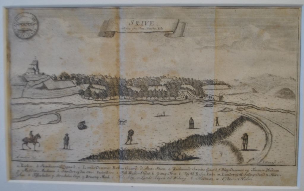 Haas, Jonas (1720–1775) Dänemark: Skive – von links gesehen. 1767. Kupferstich. Signiert. 18 × 28 cm.Gerahmt: 30 x 41 cm.