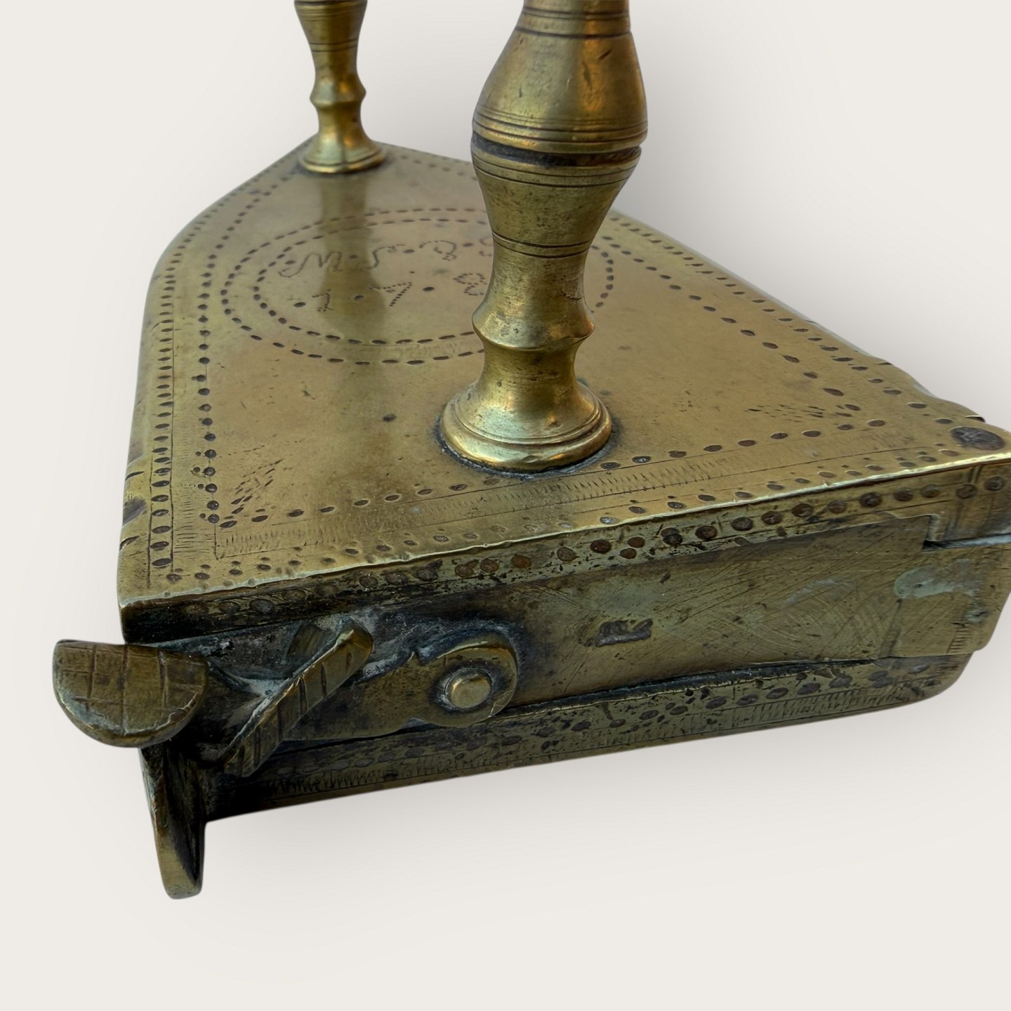 Messing, mit den Initialen des Besitzers und der Jahreszahl 1784 gekennzeichnet. Maße ca.: H x B x T 11 x 14 x 8 cm. *Guter gebrauchter Zustand*Lager: 1