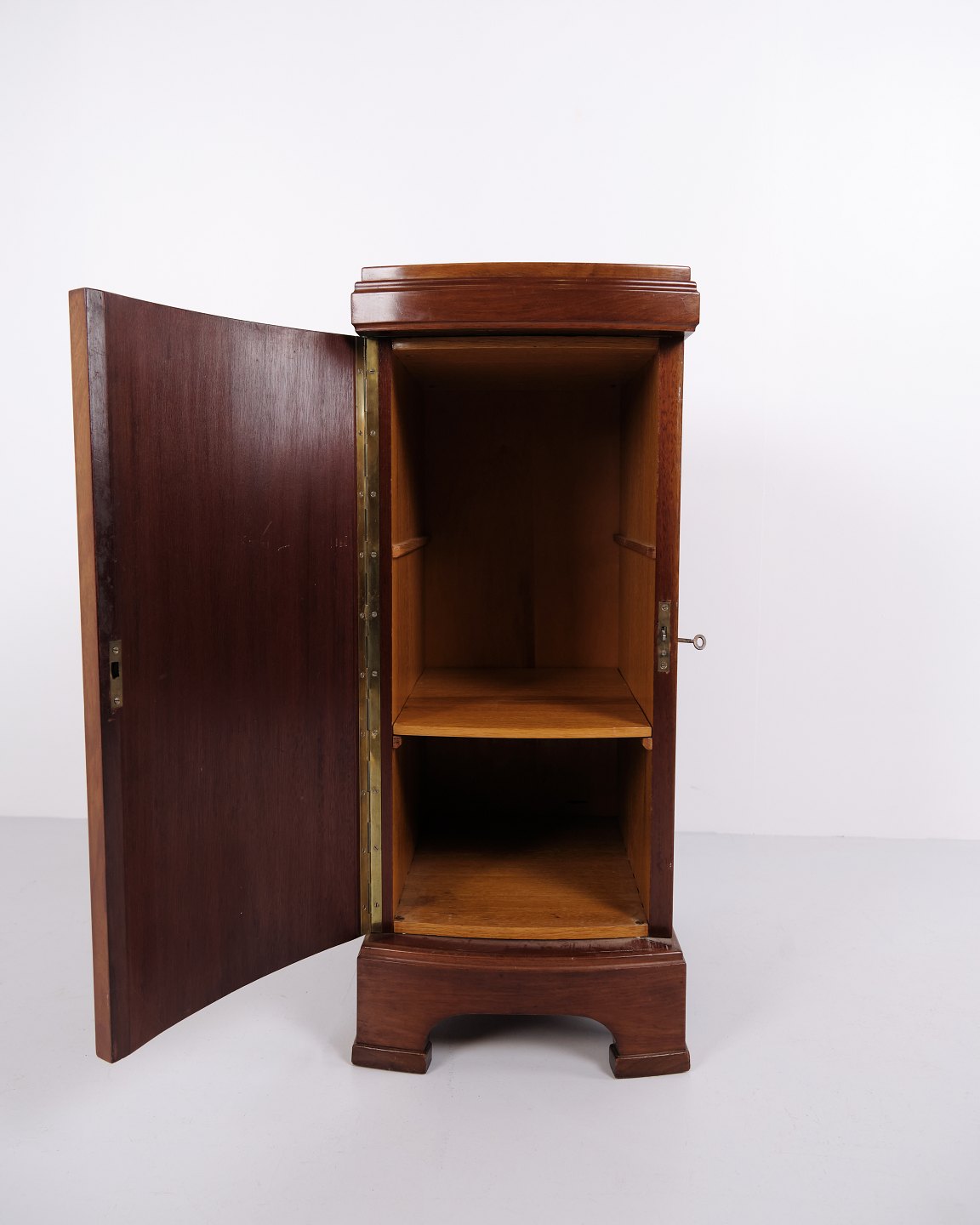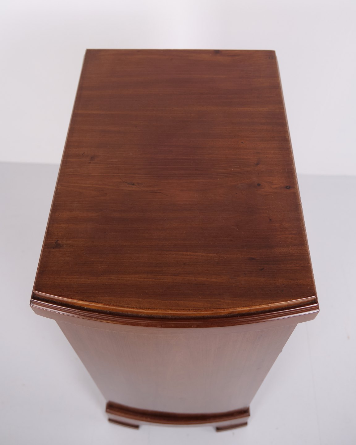 Ein Paar Nachttische aus Mahagoni aus den 1920er Jahren mit geschwungener Front und handpolierter Oberfläche. Klassisches Design mit elegantem Ausdruck.— Herkunft: Europa
