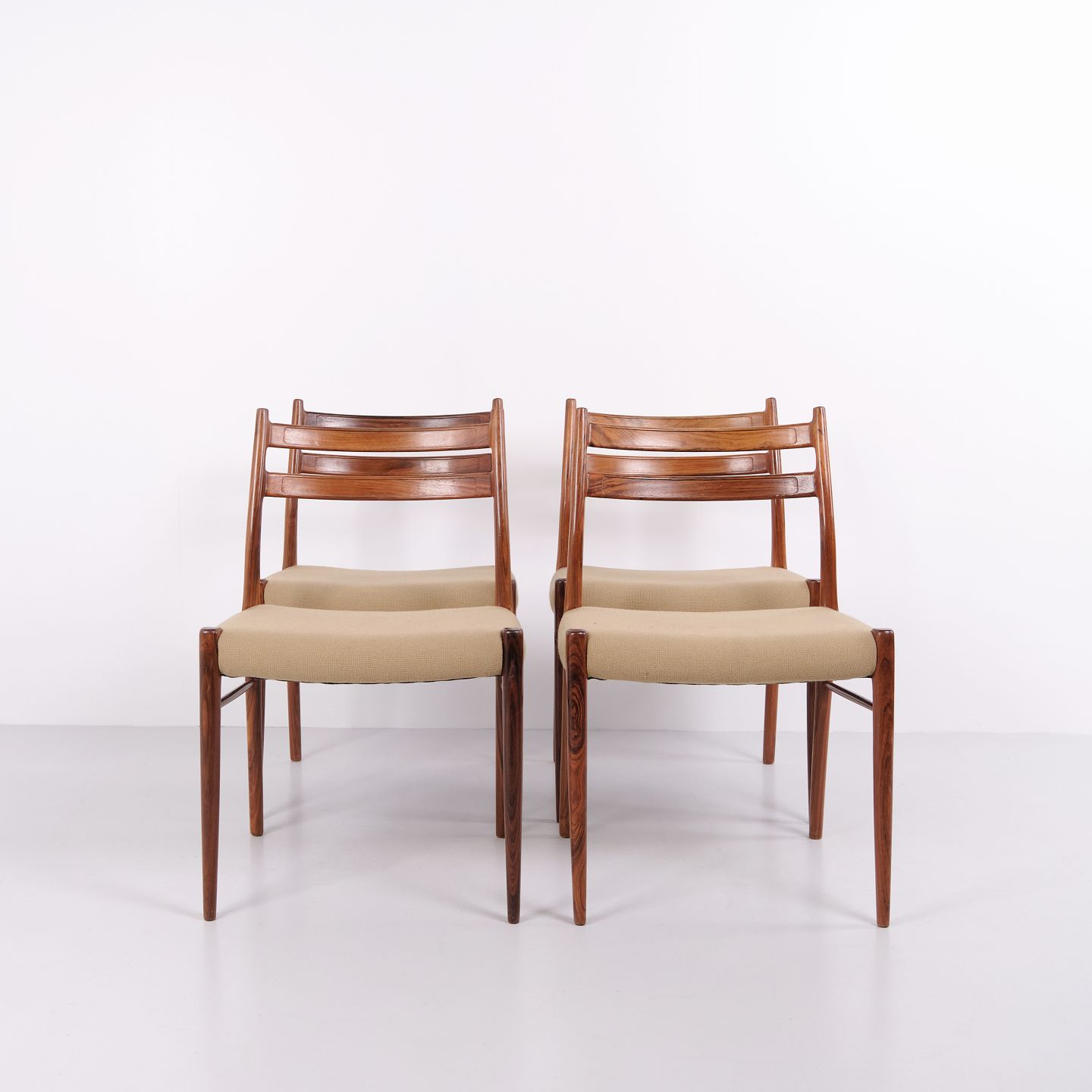 Satz von 4 Esszimmerstühlen aus Palisander von Arne Wahl Iversen für Glyngøre Stolefabrik. Dänisches Design aus den 1950er Jahren.— Herkunft: Dänemark