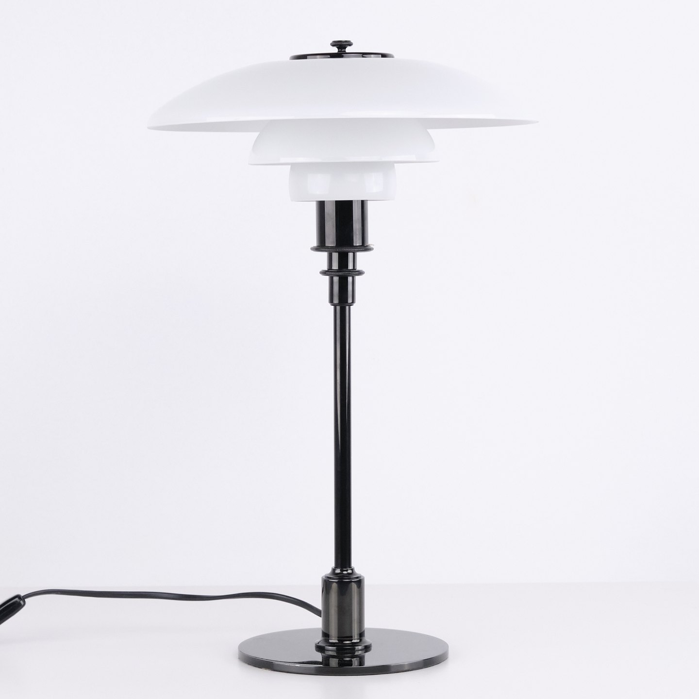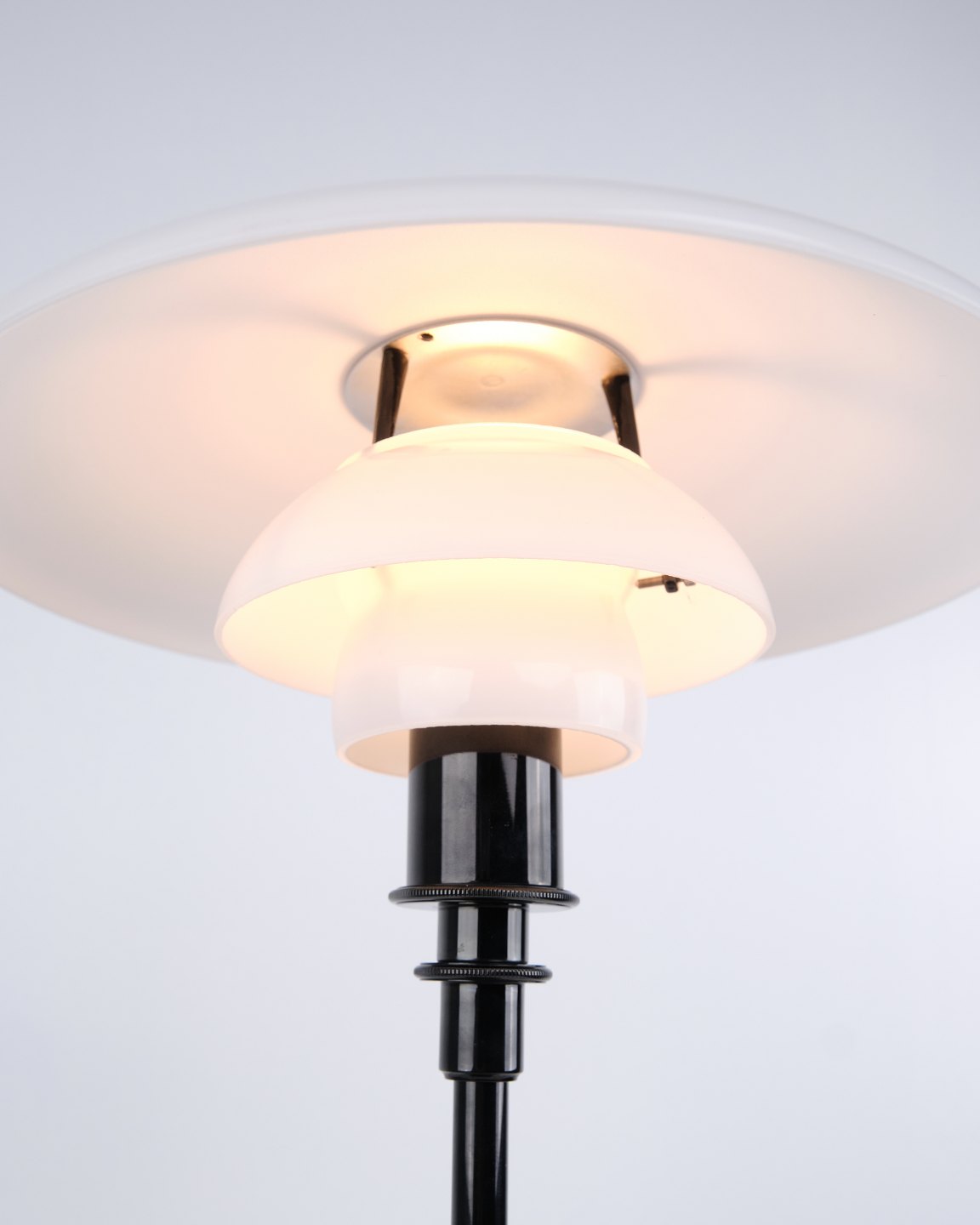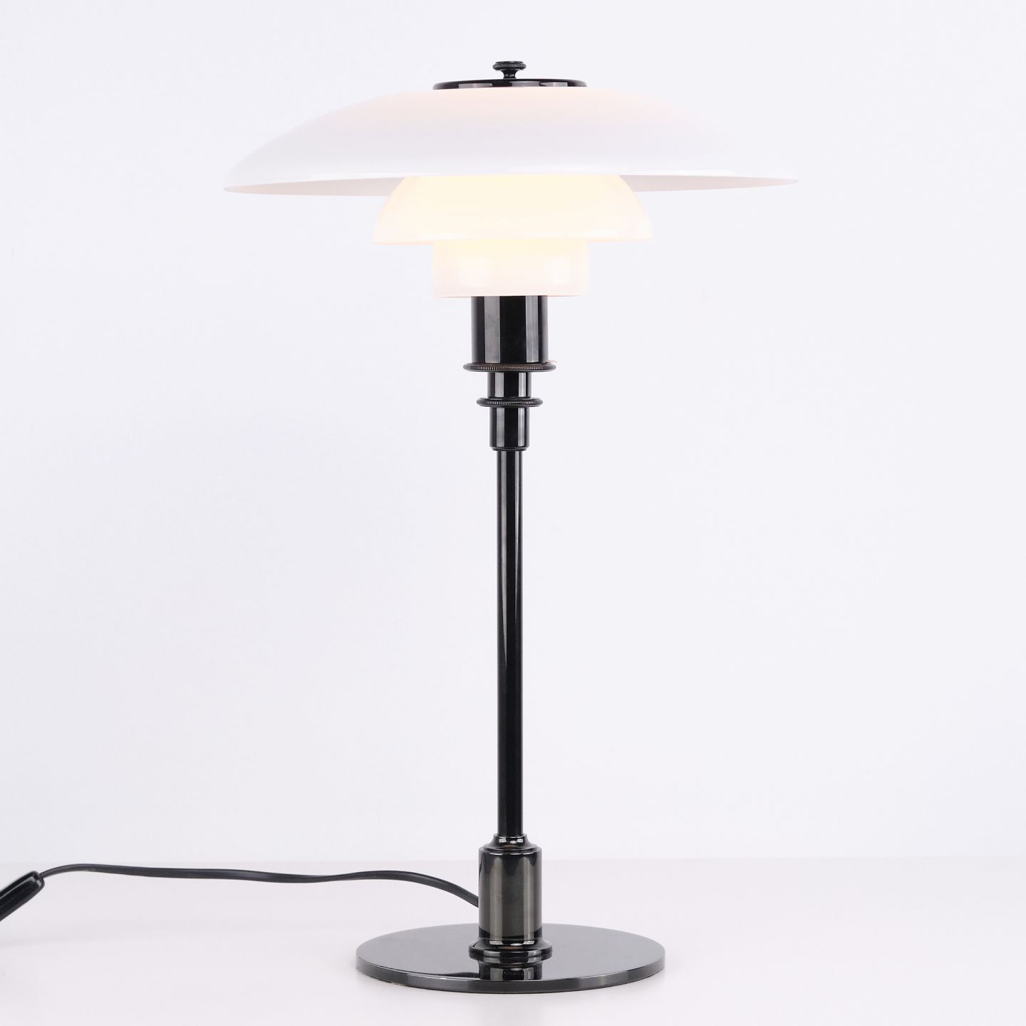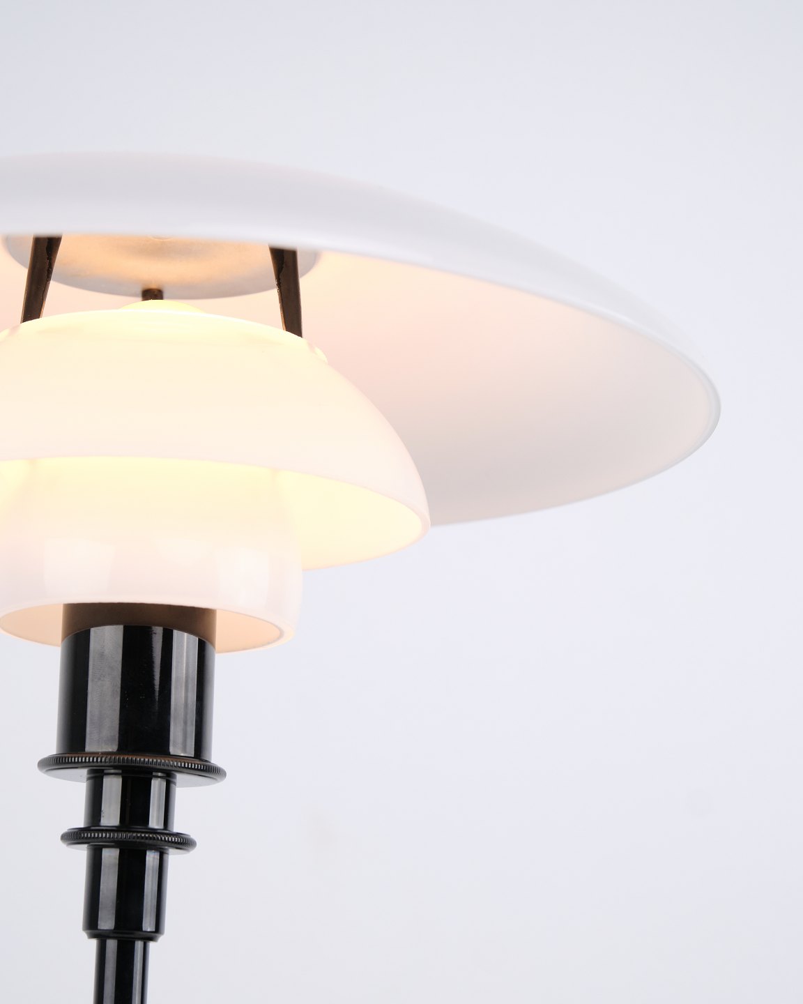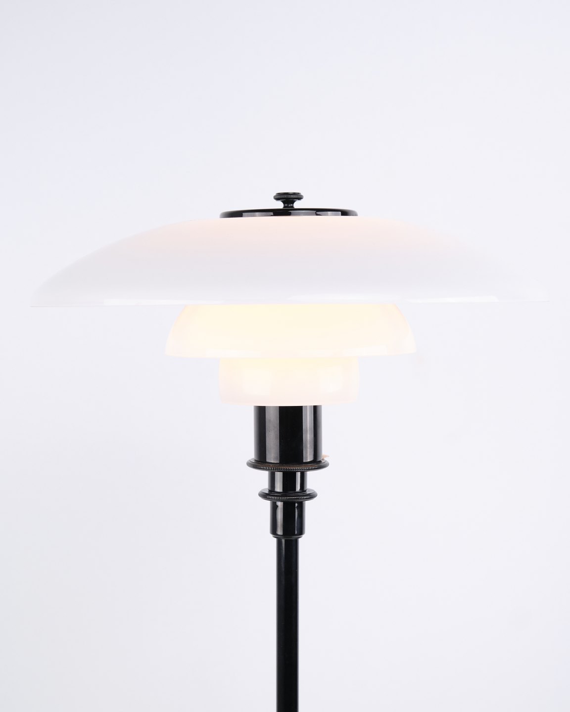 PH 3/2 Tischlampe aus schwarz metallisiertem Messing von Louis Poulsen. Entworfen von Poul Henningsen mit klassischem dänischem Lichtdesign und elegantem Ausdruck.— Herkunft: Dänemark