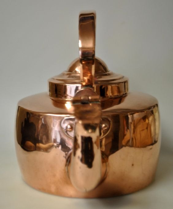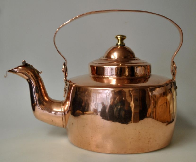 Kupferkessel, J. Hjernøe (1832–1871), Aarhus, Dänemark. Gestempelt. Mit Griff und Ausguss. Deckel mit Messingknauf. Höhe mit Griff: 22 cm.Bestellnummer: 29031