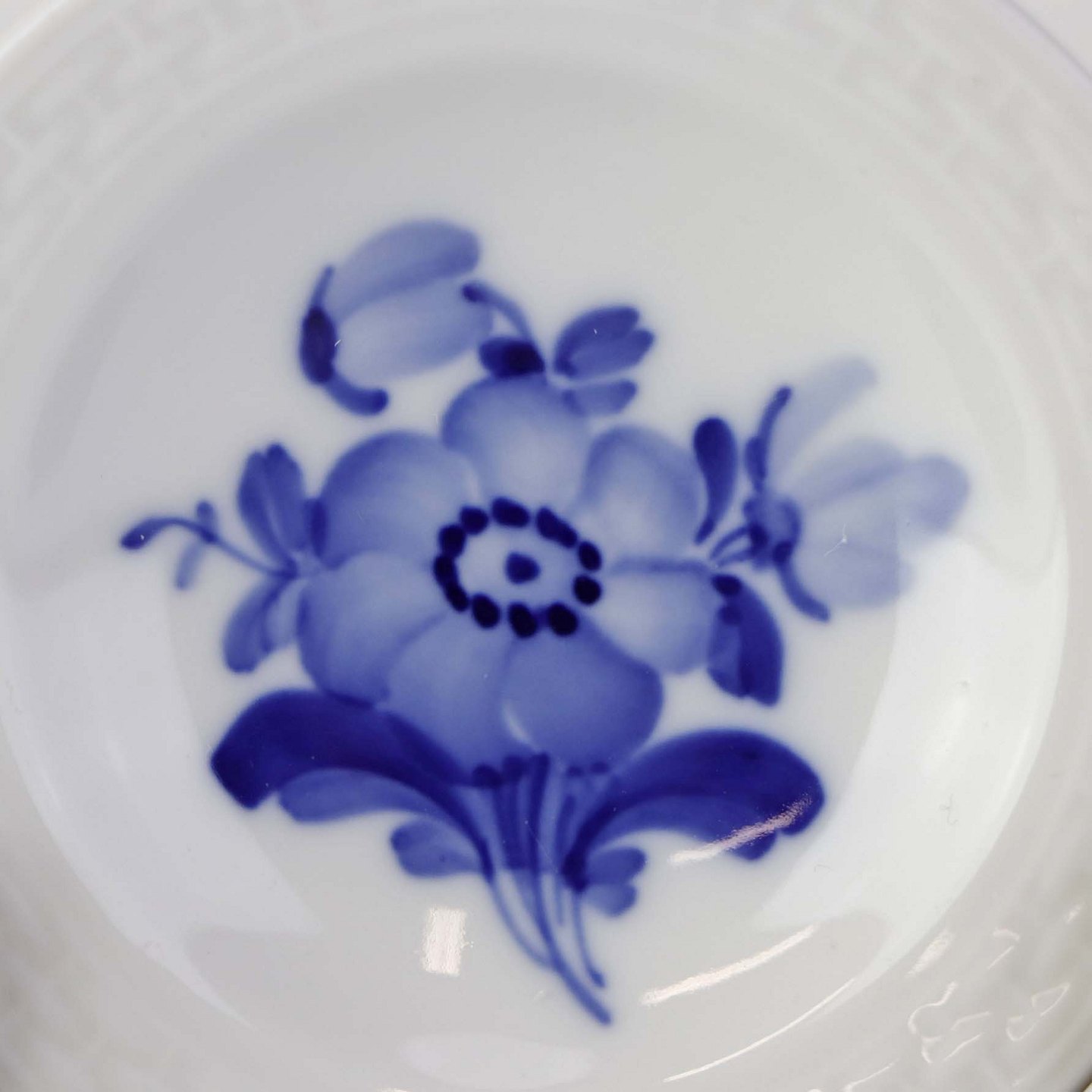 Rund asiet i kongeligt porcelæn fra stellet Blå Blomst flettet. Nr. 10/8180Producent Royal Copenhagen