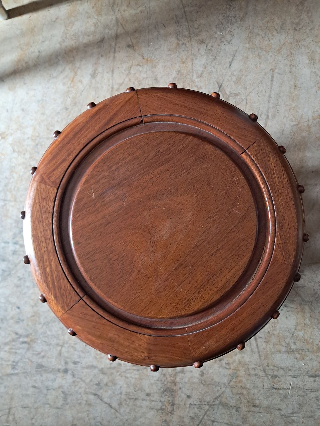 Asiatisk taburet i massivt træ, fra 1990erne.Den har brugsspor.