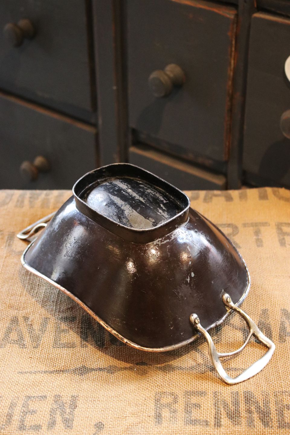 Antik svensk brødbakke / skål i bemalet metal med kant og hanke i messing...