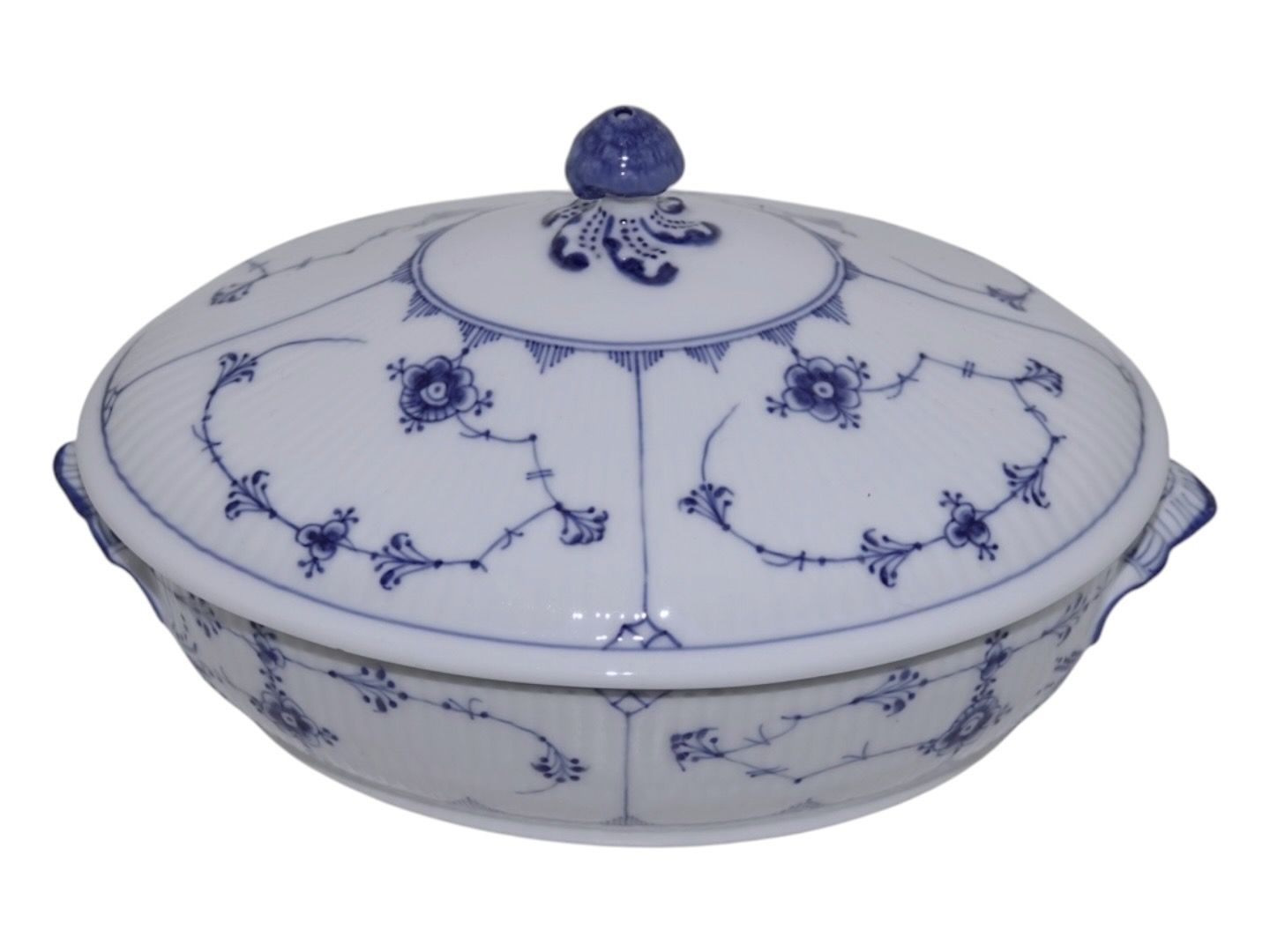 Royal Copenhagen Musselmalet Riflet, sjælden lille skål med låg (lille terrin).Dekorationsnummer 1/405.