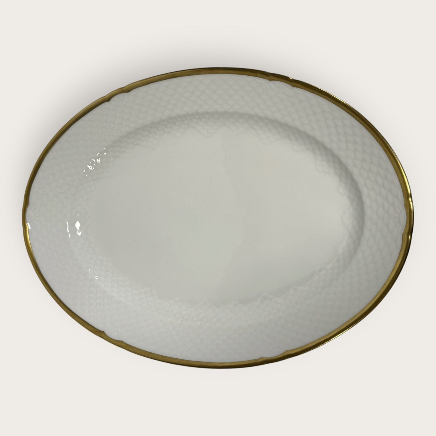 Bing & Grondahl, Aakjær, Weißes Porzellan mit Goldrand, Große Servierplatte Nr. 15, 41 x 28,5 cm, 1. Wahl *Guter Zustand*Lager: 1