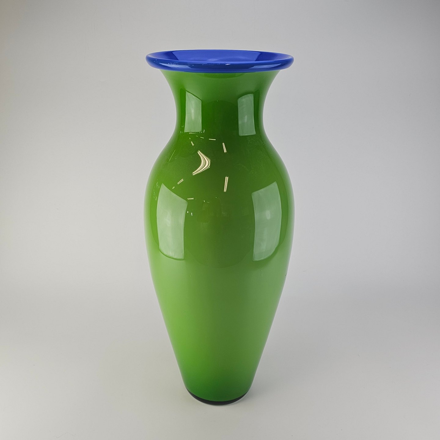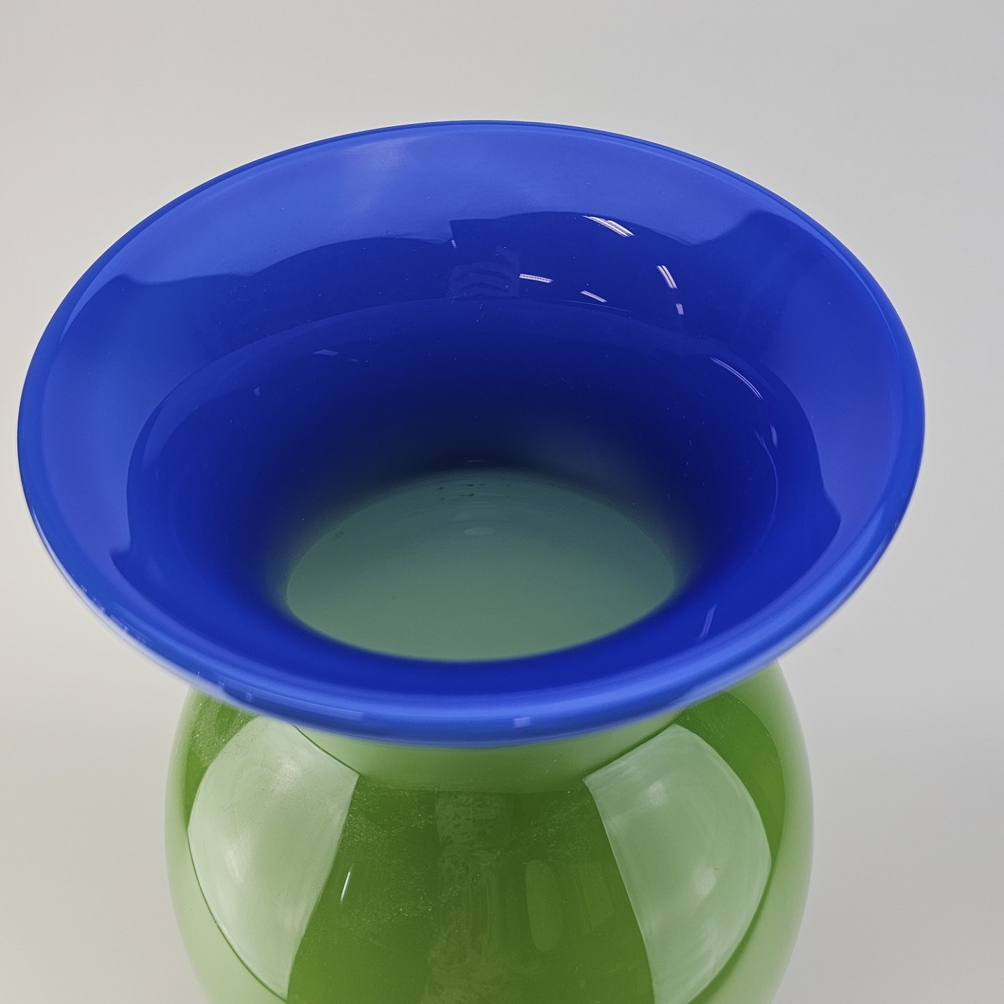 Isis vase i glas med grøn yderside og blå indersideDesign Anja Kjær