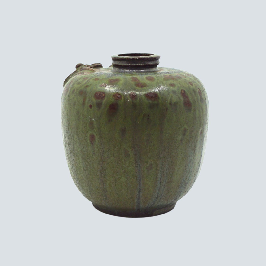 Arne Bang; Vase af stentøj med grøn og brun glasur