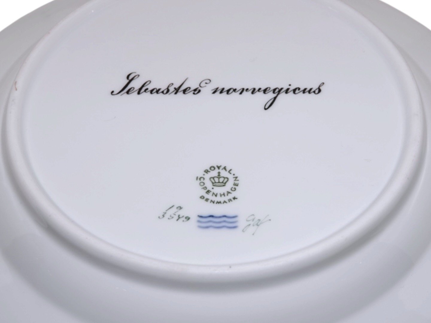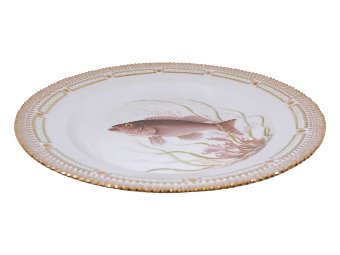 Royal Copenhagen Flora Danica, middagstallerken dekoreret med fisk.Dekorationsnummer 19/3549.