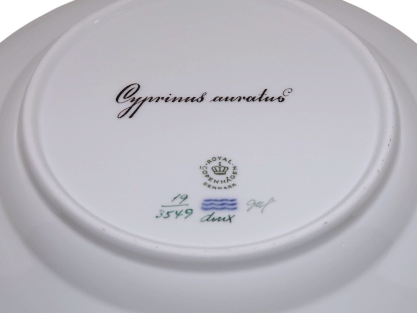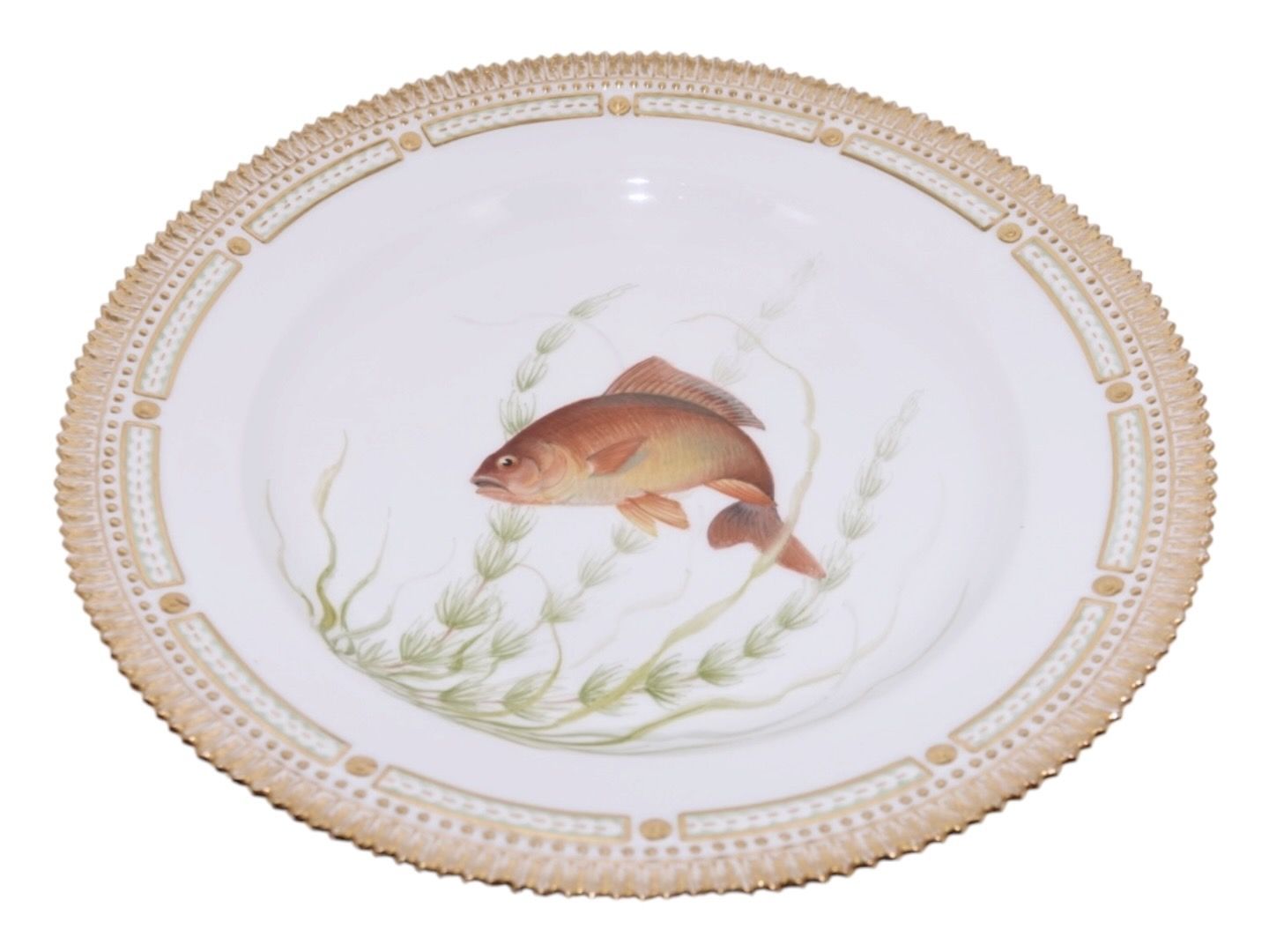 Royal Copenhagen Flora Danica, middagstallerken dekoreret med fisk.Dekorationsnummer 19/3549.