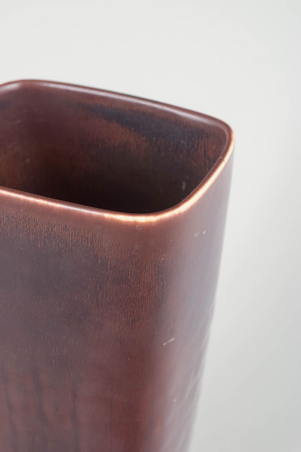 Carl-Harry Stålhane for Rörstrand, stor vase.Stor, elegant vase i stentøj med let konisk form og dyb brun glasur med fine nuancer og blød overgang i overfladen. Et klassisk eksempel på Stålhane’s raffinerede formsprog og sikre glasurarbejde.
