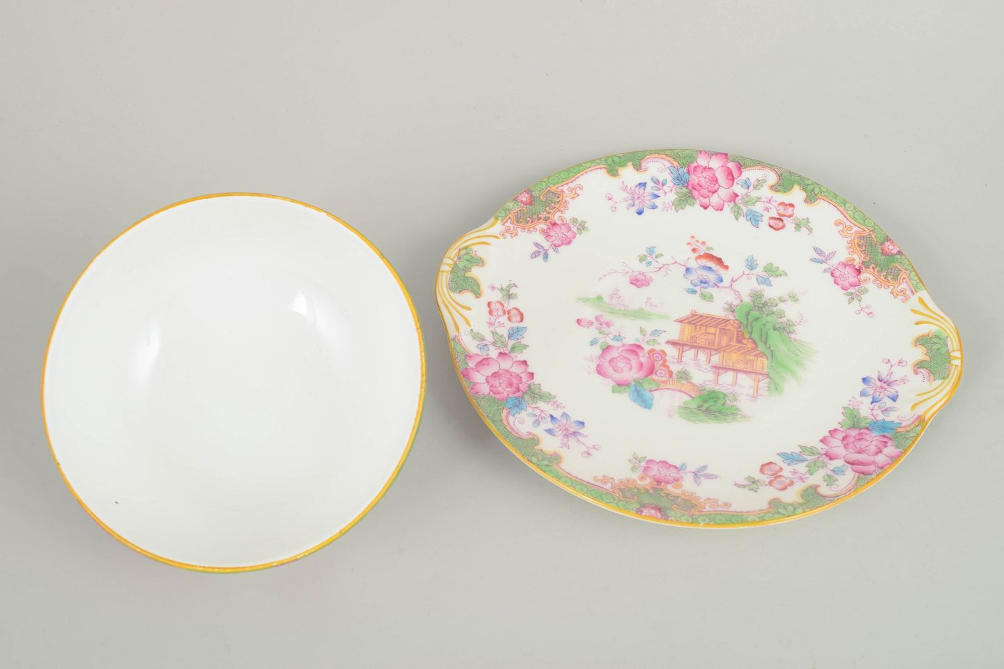 Royal Doulton "Temple", osteklokke.Dekorativ osteklokke i porcelæn med farverig blomsterdekoration i Temple mønster, bestående af kuppel og tilhørende fad.