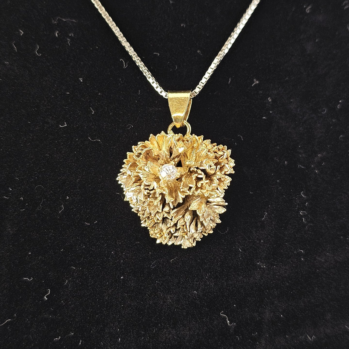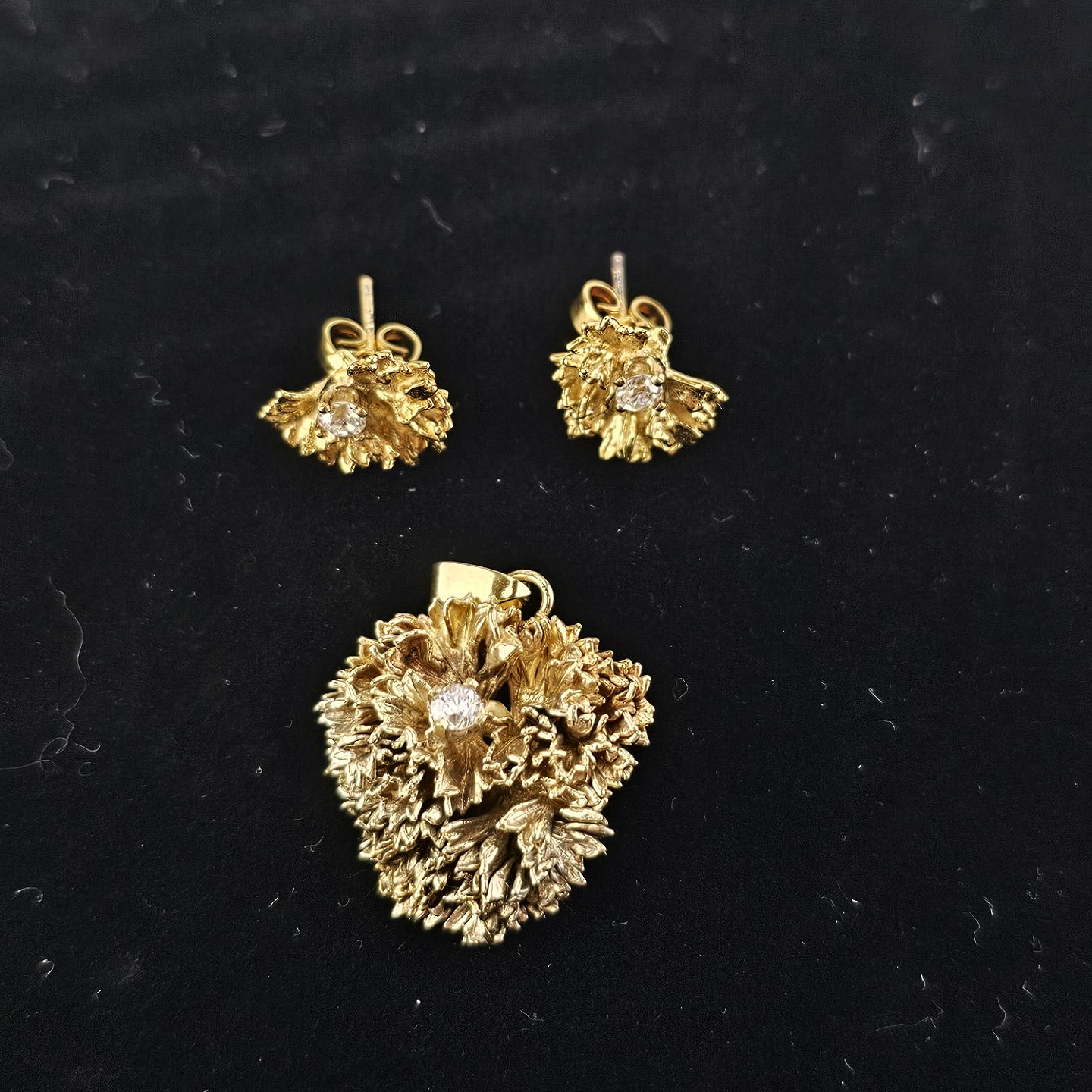 Ørestikker og vedhæng i forgyldt sterling sølv formet som en buket persilleProducent Flora Danica