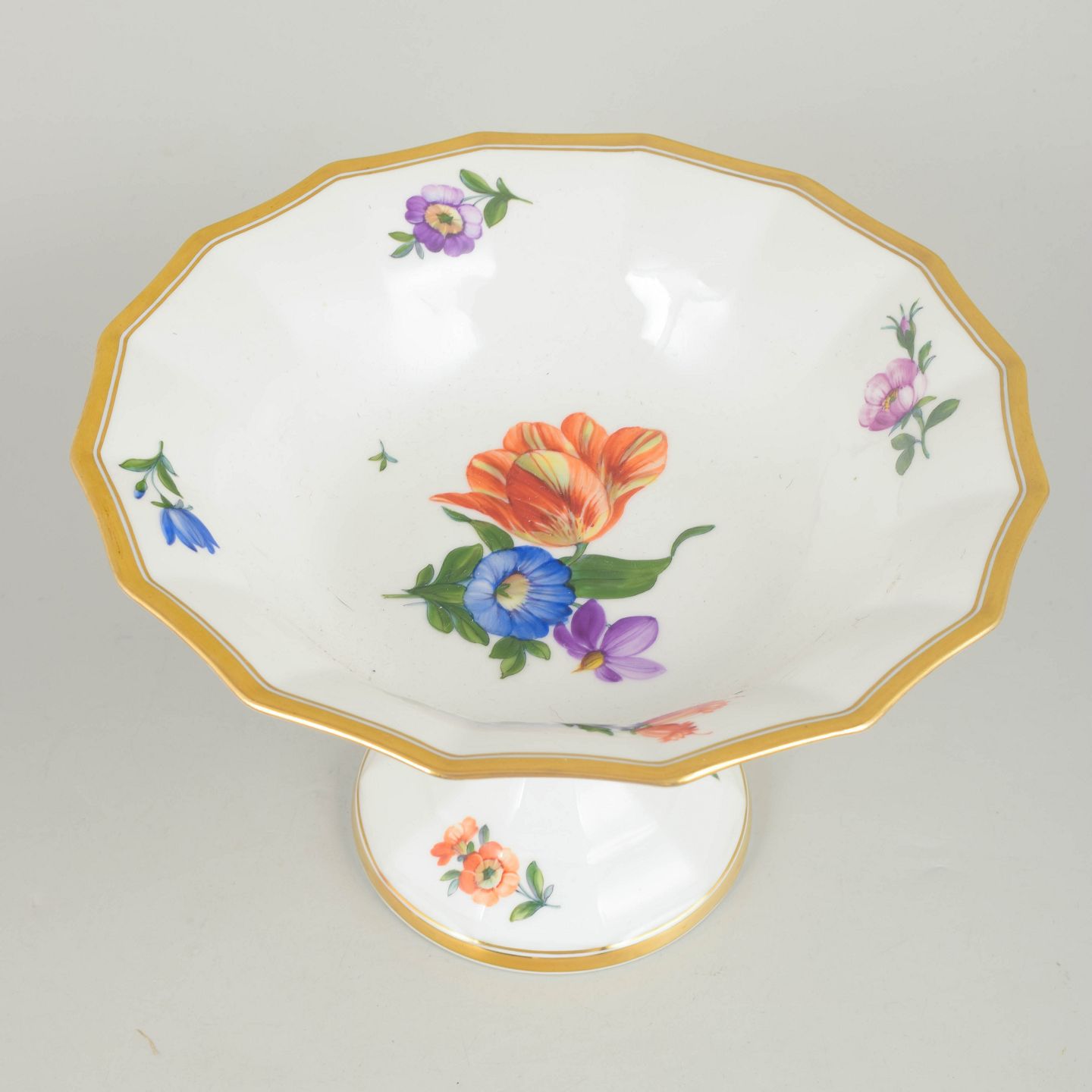 Royal Copenhagen Saksisk blomst opsats.Elegant opsats i porcelæn dekoreret med håndmalet blomsterdekoration i Saksisk blomst mønster. Fremstillet i første sortering med klassisk form og balanceret proportion, model 627/8531, dateret 1961.